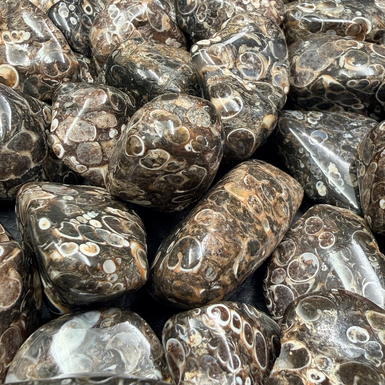 L’agate Turitelle est souvent associée au travail sur les mémoires anciennes, qu’elles soient personnelles, transgénérationnelles ou symboliquement liées à l’histoire collective. Sa nature fossile agit comme un rappel que tout laisse une empreinte, et que la transformation est un processus naturel et continu.