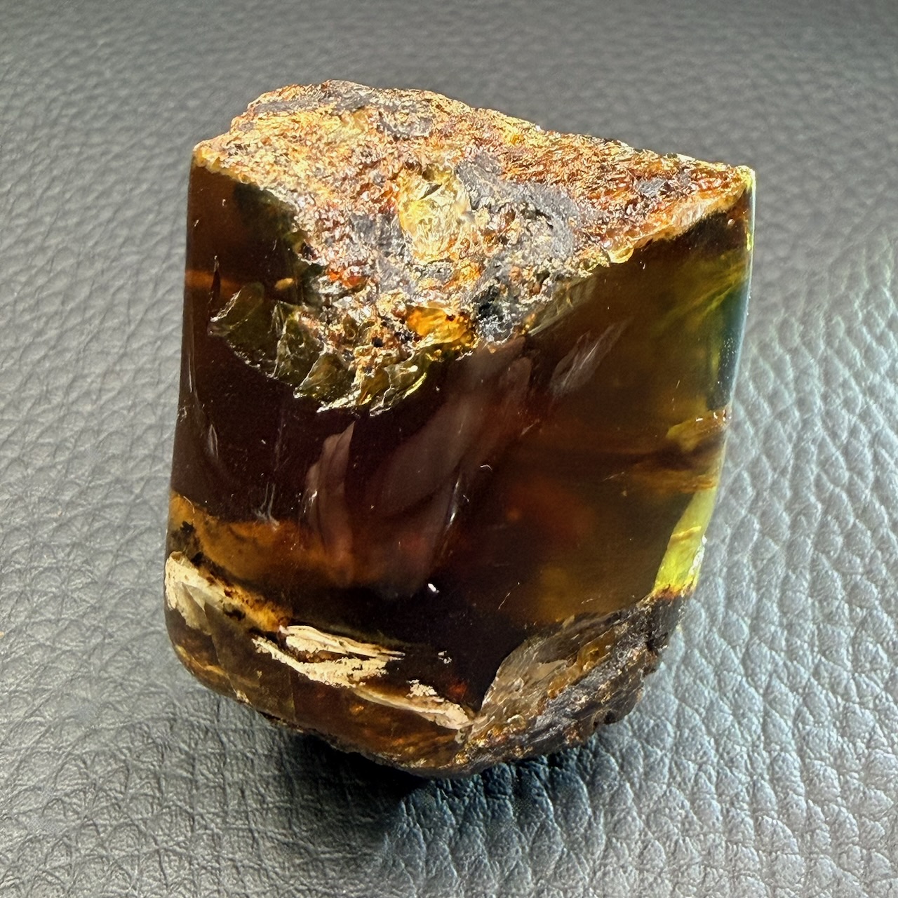 En Indonésie elle possède une couleur rare, ça teinte va parfois jusqu’au vert, phénomène qui est rarissime dans la nature, cette résine fossile est très rare.