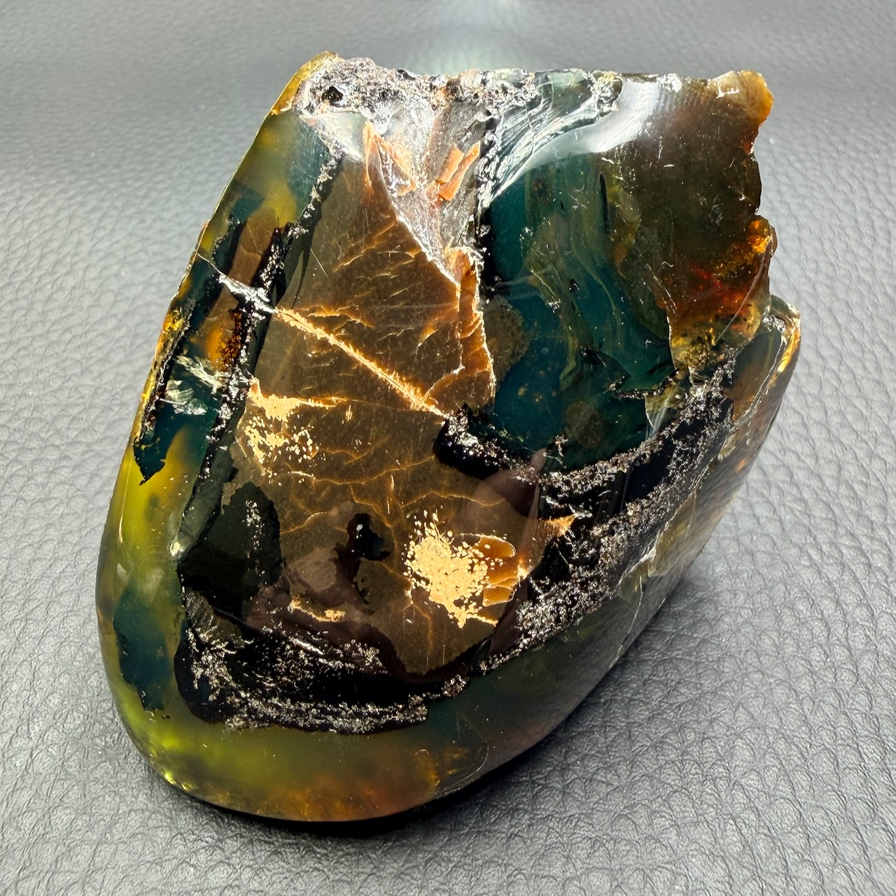 L’ambre bleu de Sumatra est une résine fossile végétale, elle est translucide de couleur sombre caramel elle regain par fluorescence, cet ambre ce teinte d’une couleur bleue à la lumière du soleil.