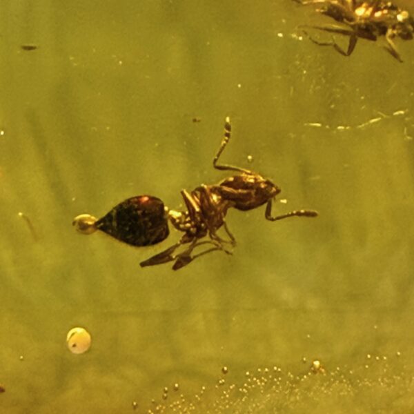 Le procédé de fossilisation de cette résine est un processus rare dont les événements ont pu modifié la nature initiale de cette résine fossile. Cette sève fossile a préservé parfaitement ses inclusions, qui ont été mise a l’abri des altérations et des dégradations du temps.