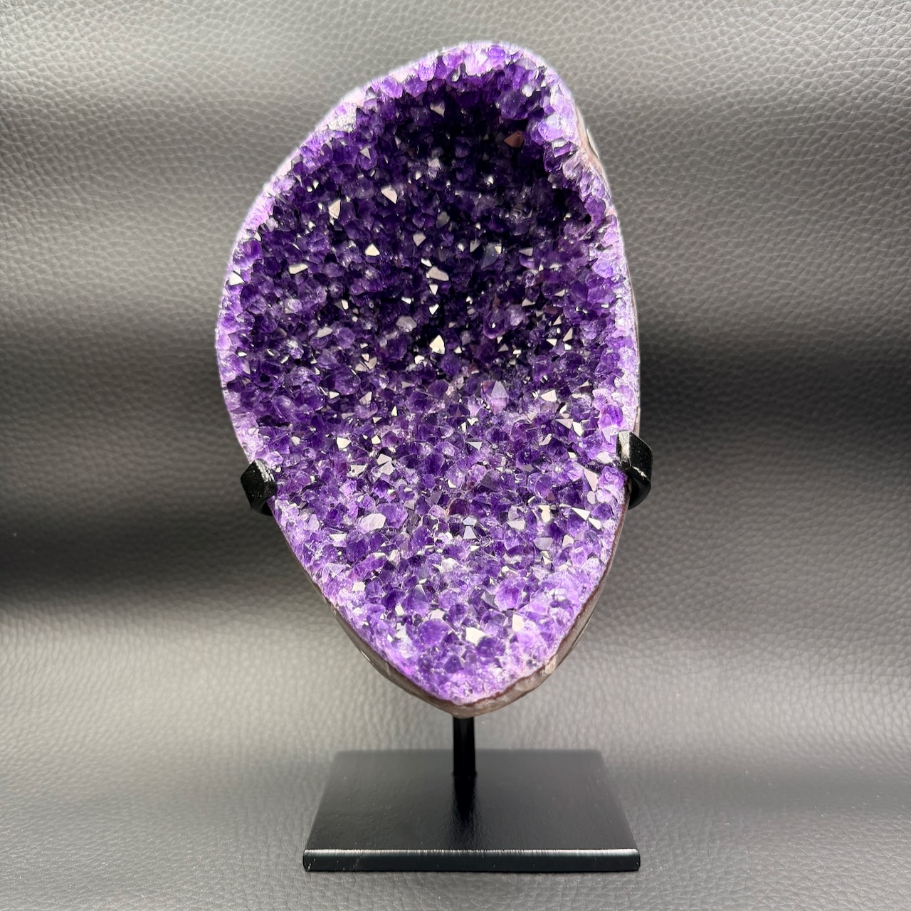 En lithothérapie, elle est célébrée pour ses vertus apaisantes et spirituelles. Les géodes d’améthyste, en particulier celles venant d’Uruguay, sont encore plus puissantes du fait de leur composition unique et de la concentration de cristaux en leur sein.