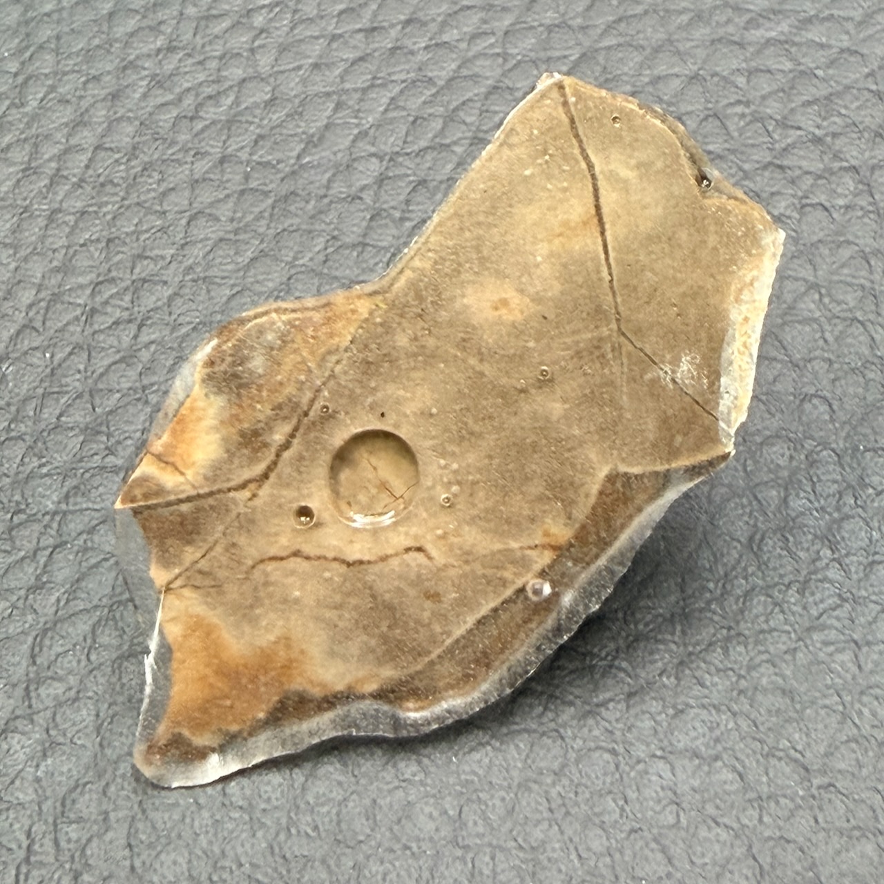 Cette pierre provient de fossiles d’ammonites, des Placenticeras de la formation géologique de Bearpaw Shale.