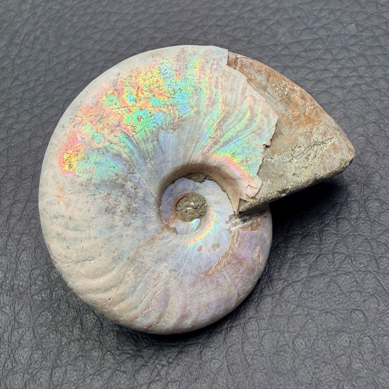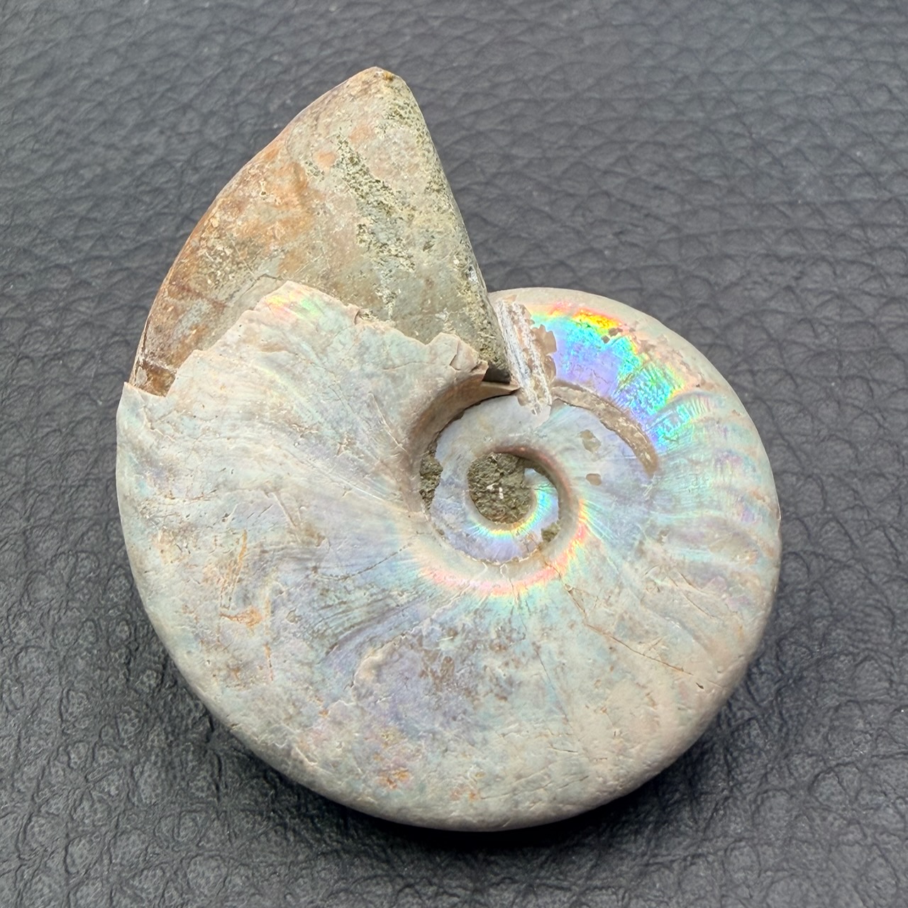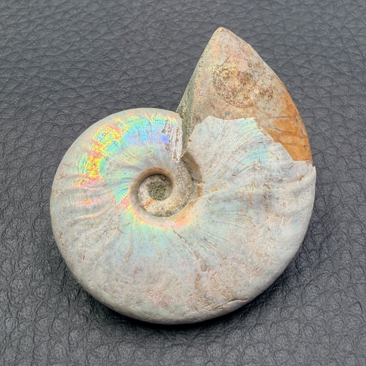 Cette espèce d’ammonite iridescente à disparu il y à environ 65 millions d’années, elles fonds parties d’une grande famille de mollusque marin préhistorique, elles ont parcourus les océans pendant plus de 300 millions d’années.