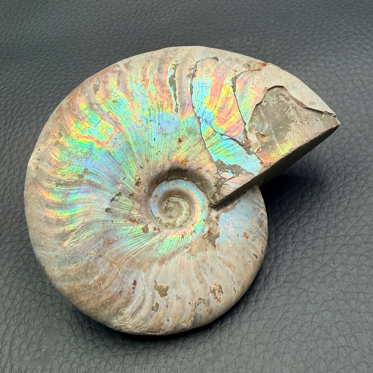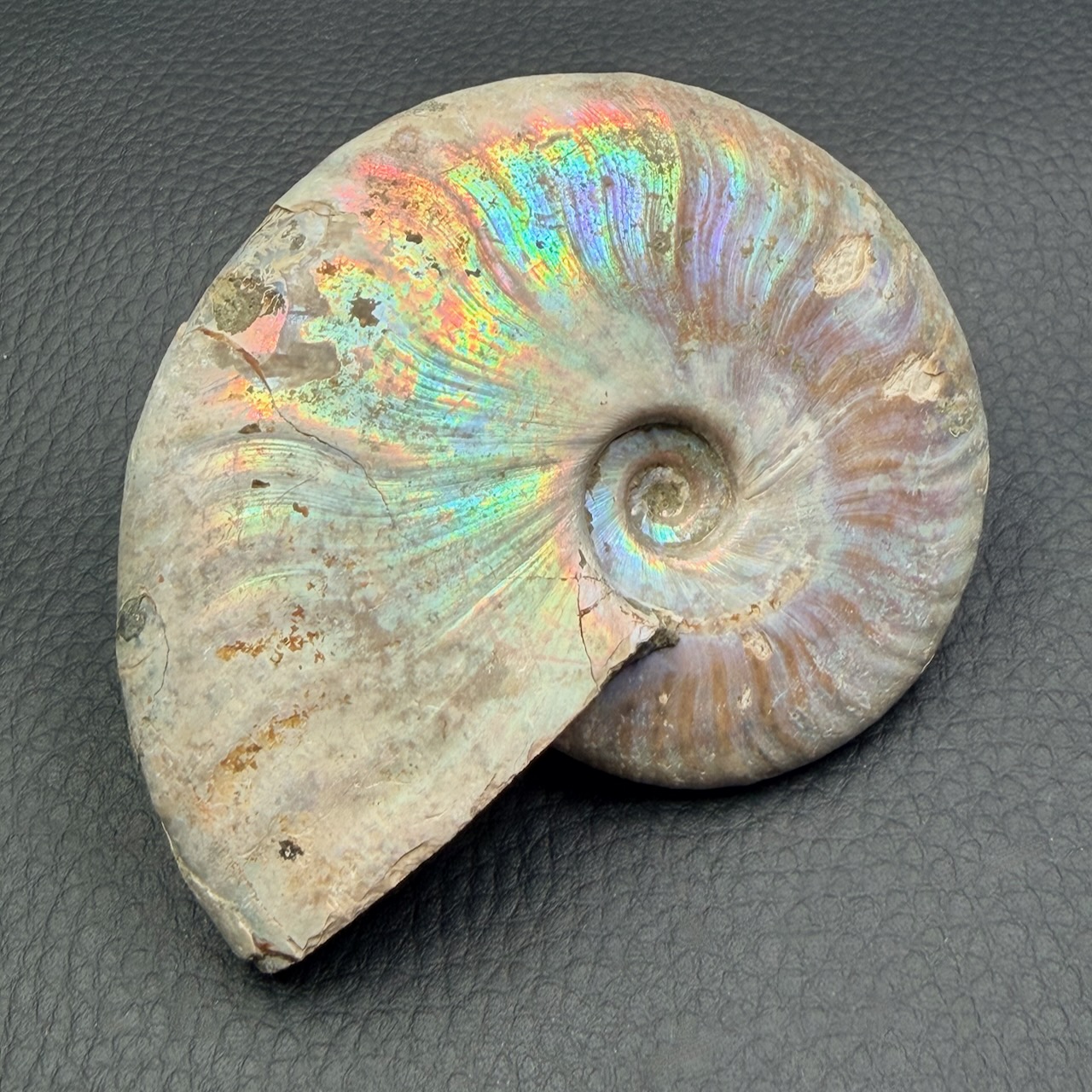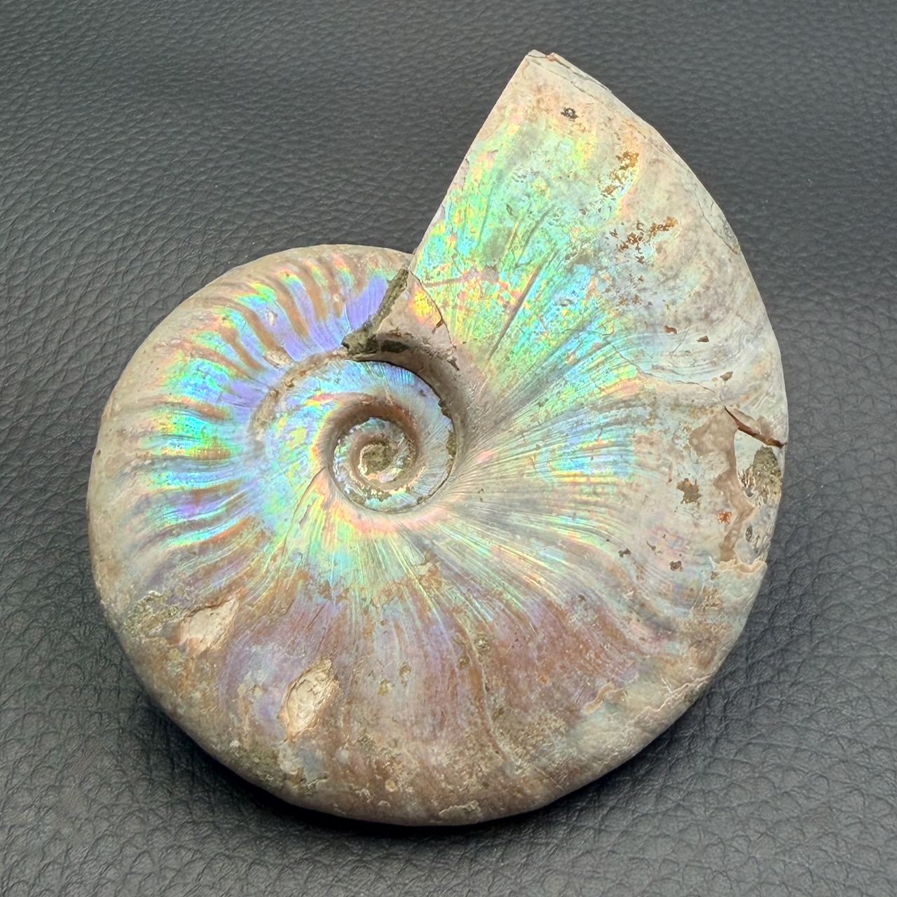 Cette espèce d’ammonite iridescente à disparu il y à environ 65 millions d’années, elles fonds parties d’une grande famille de mollusque marin préhistorique, elles ont parcourus les océans pendant plus de 300 millions d’années.