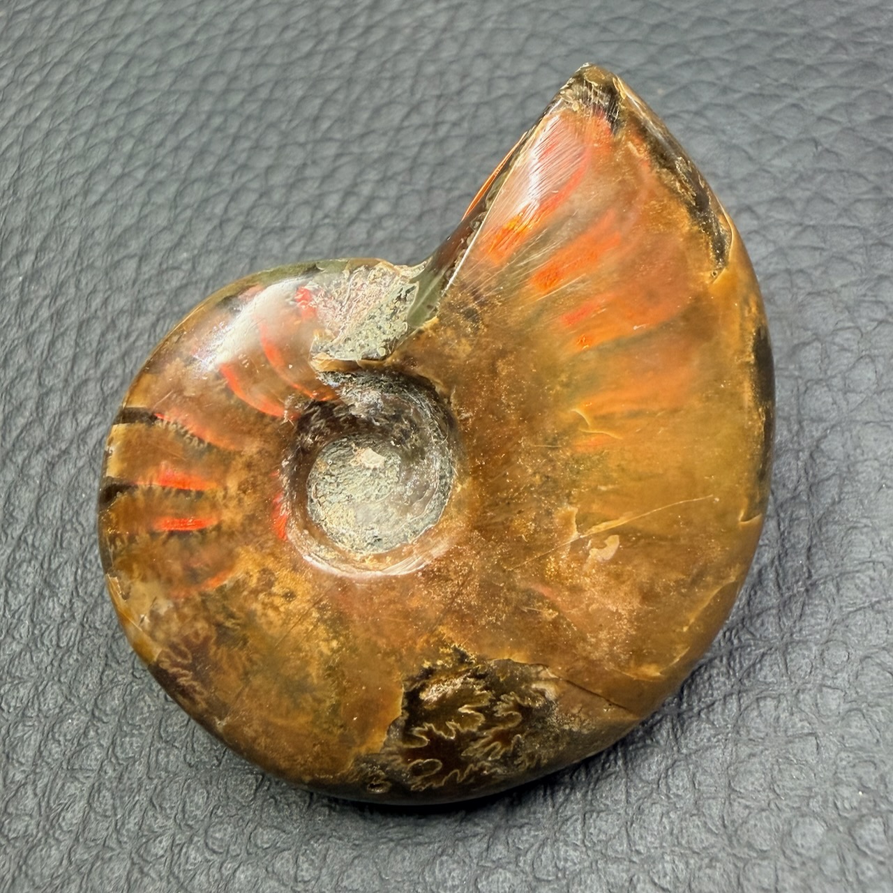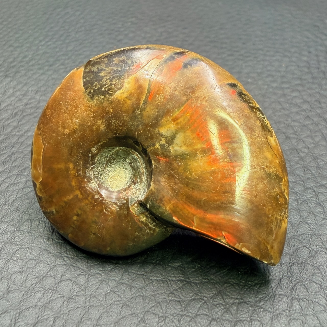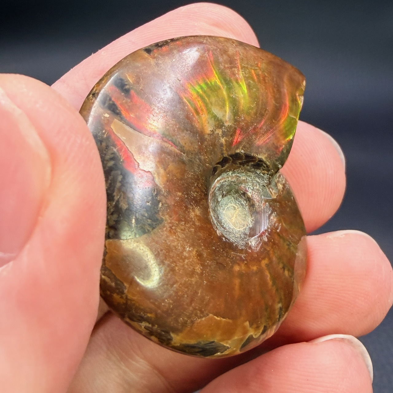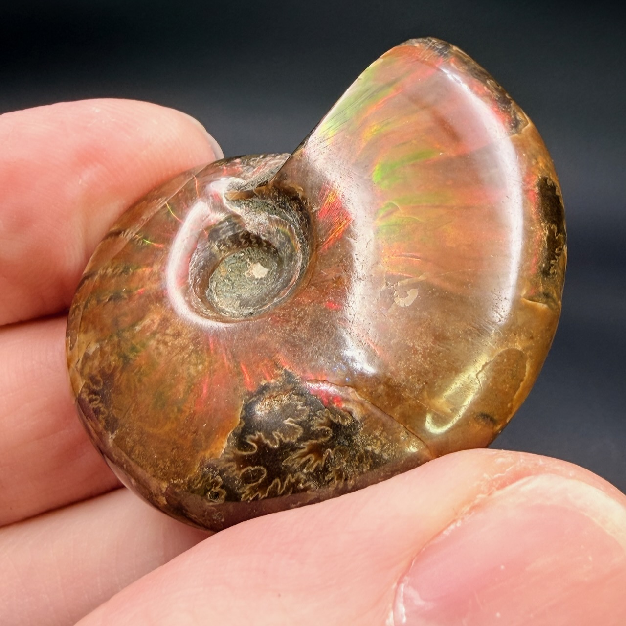 Sa fossilisation s’est étendue sur des millions d’années. L’apparition de l’iridescence est le résultat d’un équilibre fragile maintenu sur des échelles de temps qui dépassent l’entendement humain.