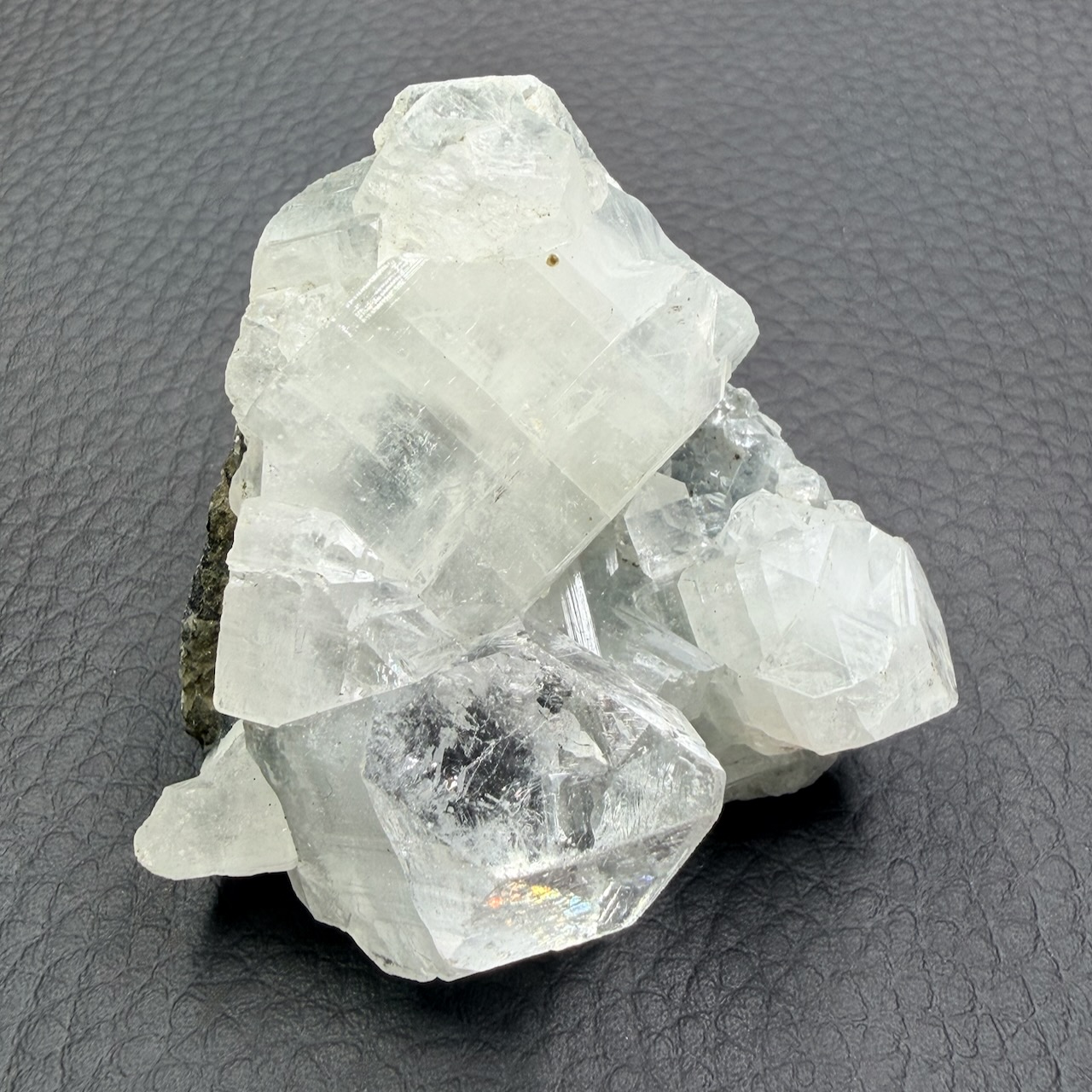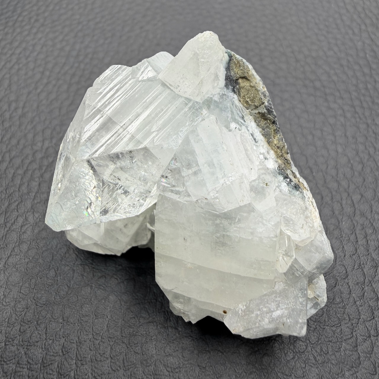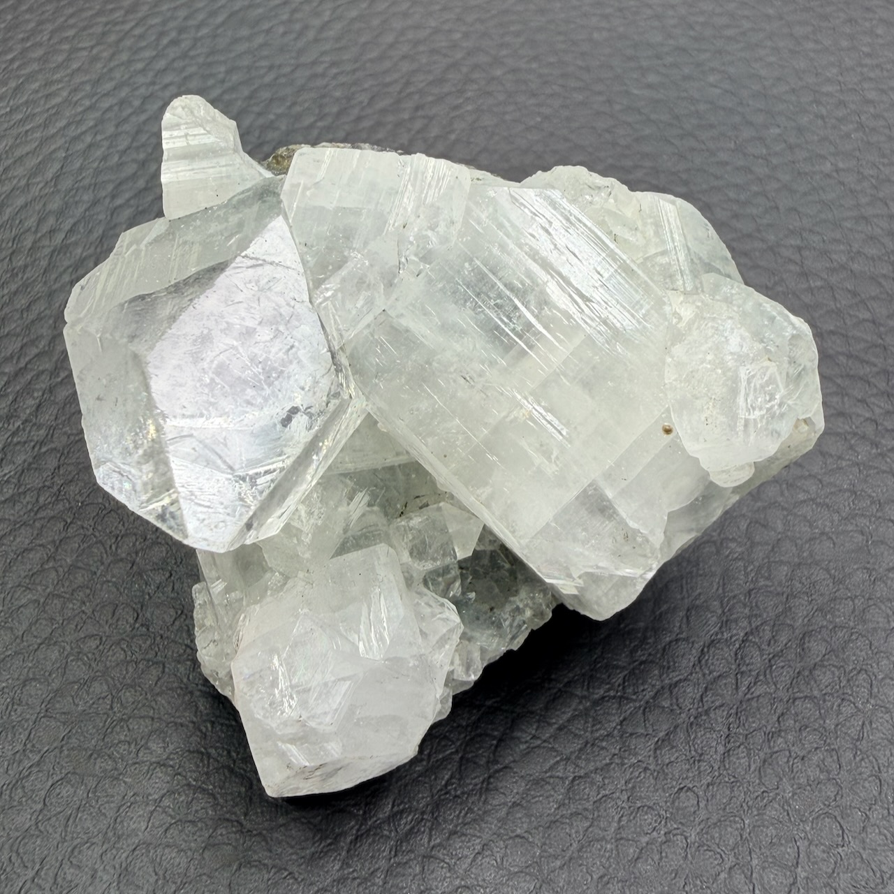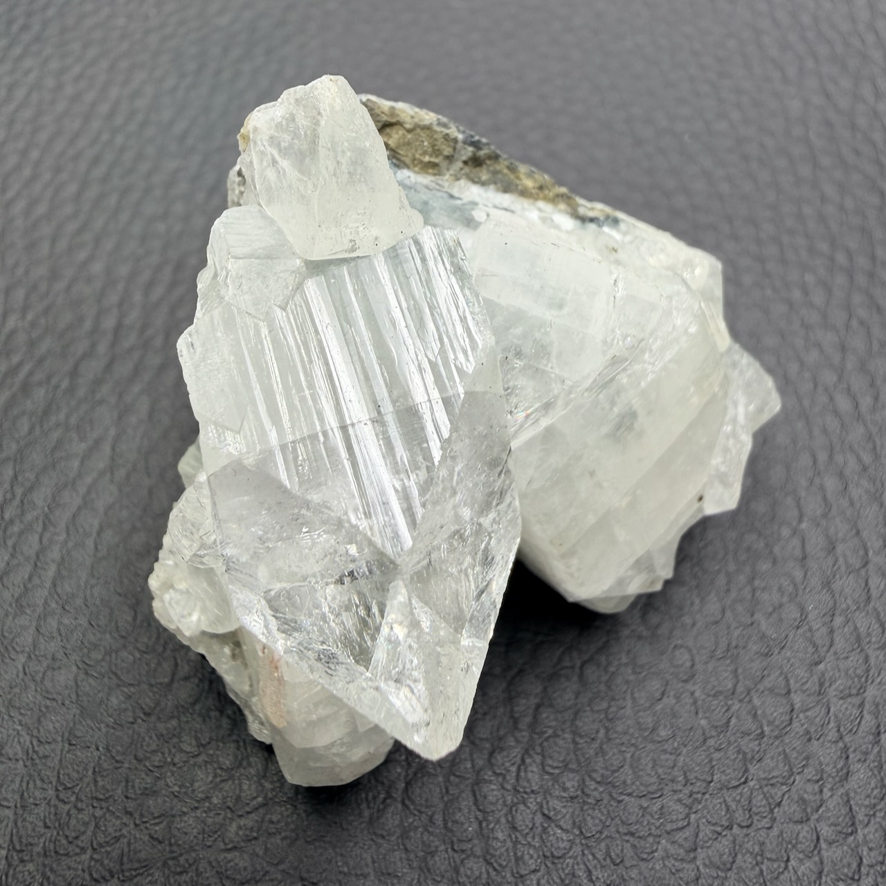 Éclat : L’apophyllite a un éclat plus perlé et nacré sur ses faces de clivage, contrairement au quartz qui est simplement vitreux.