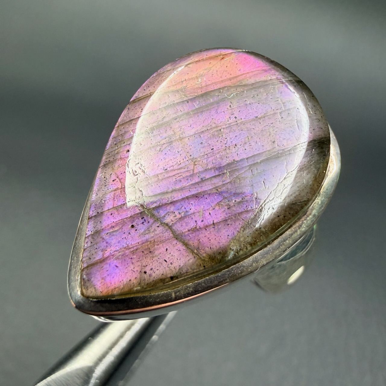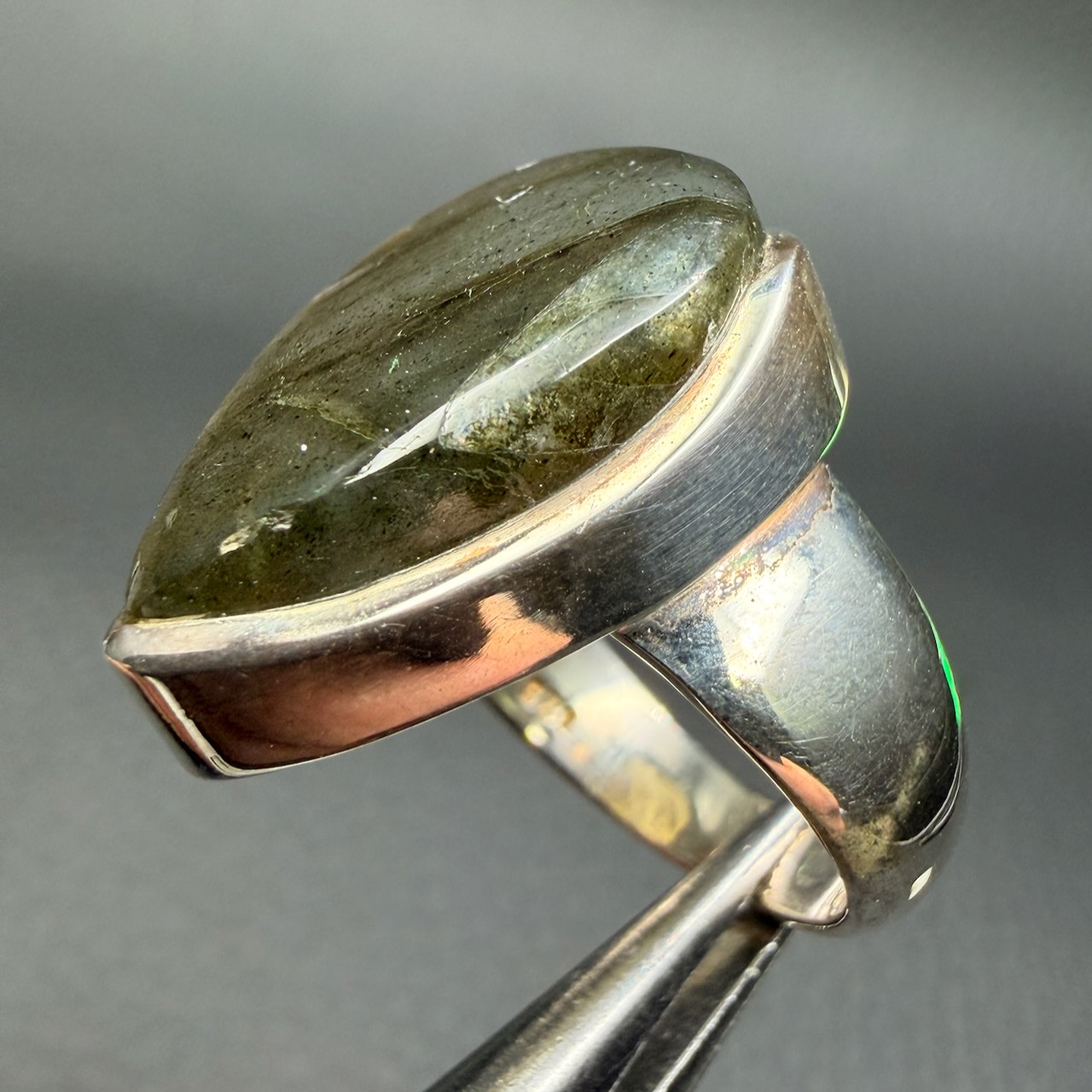 On prête à la Bague avec Labradorite des propriétés amplificatrices de nos sensations a certaines émanations telluriques et magnétiques.