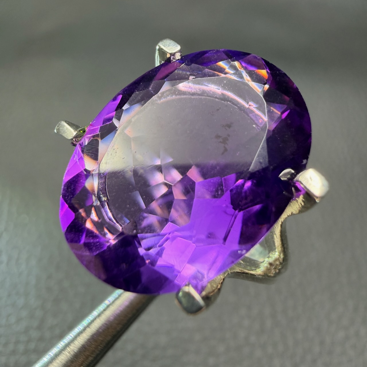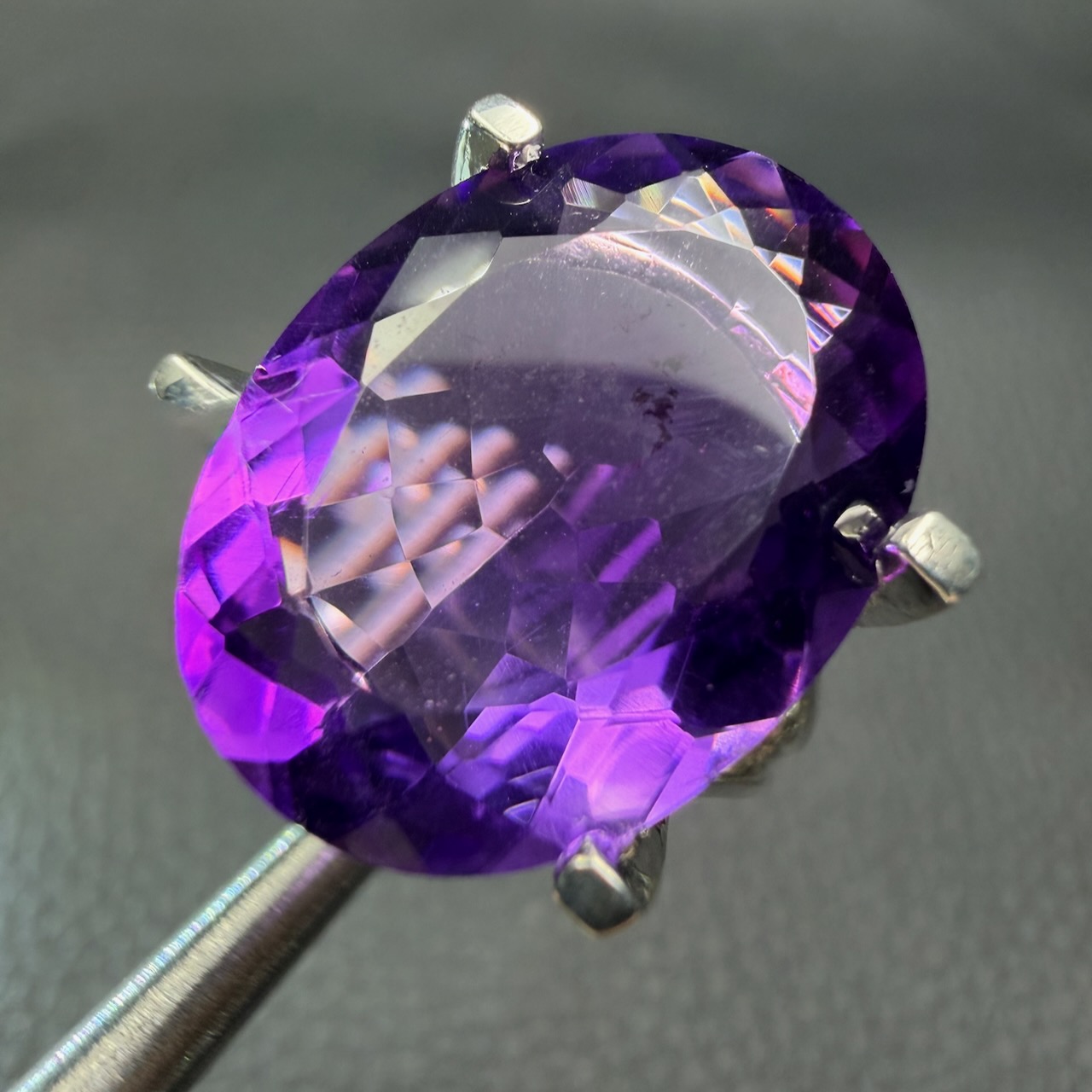 L’indice de réfraction, situé autour de 1,54 à 1,55, reste modéré. Cela signifie que la brillance de l’améthyste dépend fortement de la qualité de la taille. Une taille bien proportionnée permet d’optimiser la réflexion de la lumière et d’éviter un aspect trop sombre ou trop transparent.