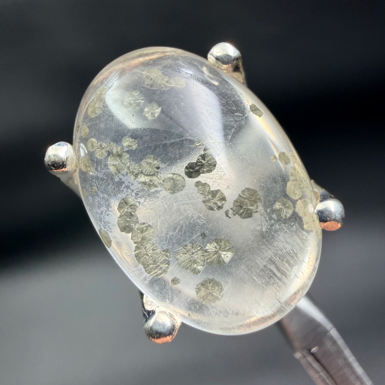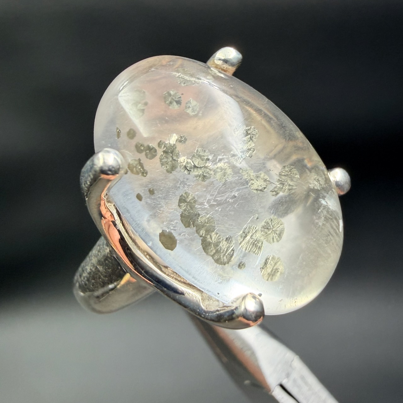 Taille de la Bague en Cristal de Roche avec Pyrite : 53.