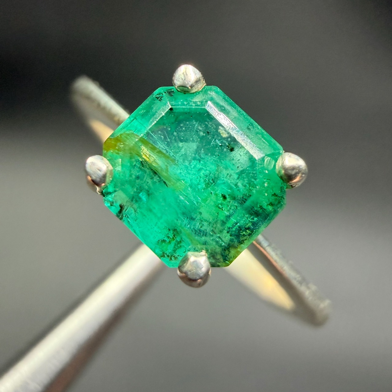 Dimensions de l’émeraude : 0,6 cm × 0,6 cm.