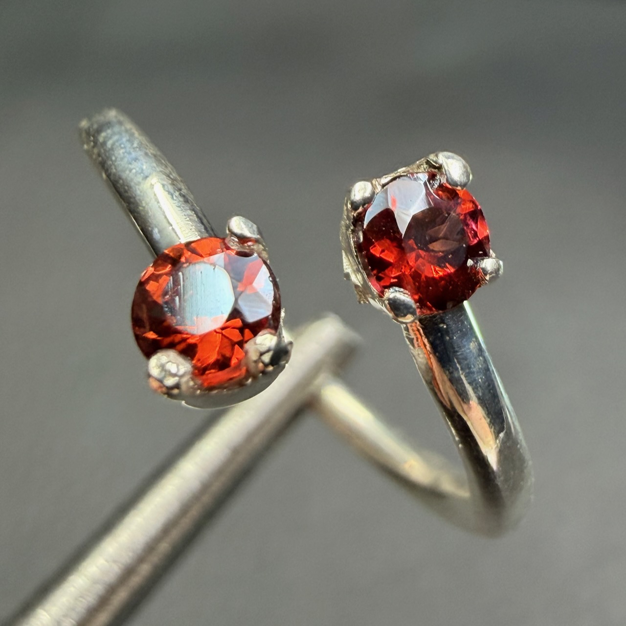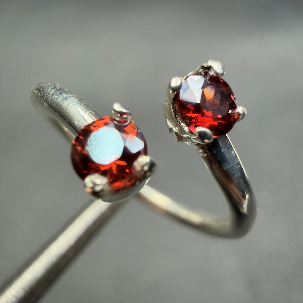 Chaque grenat étant unique, les nuances peuvent varier légèrement. Certaines pierres présentent des reflets plus sombres, d’autres une légère transparence qui laisse passer la lumière. Cette diversité naturelle renforce le caractère individuel de chaque bague.