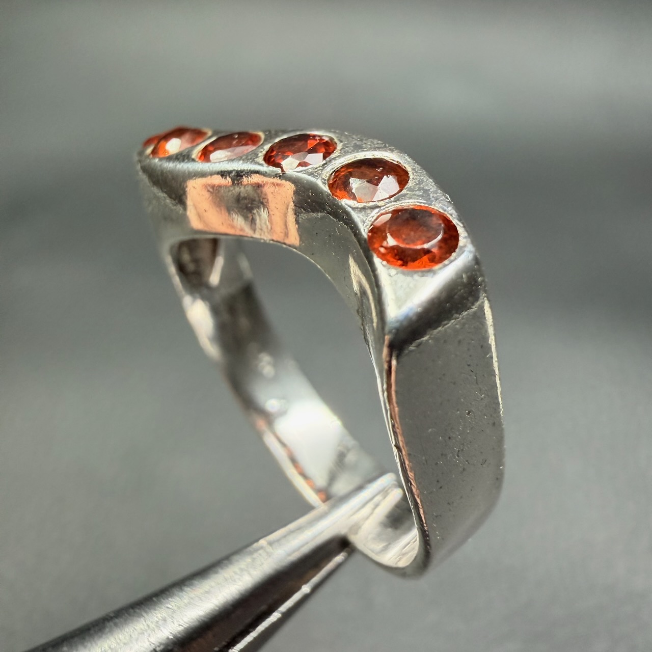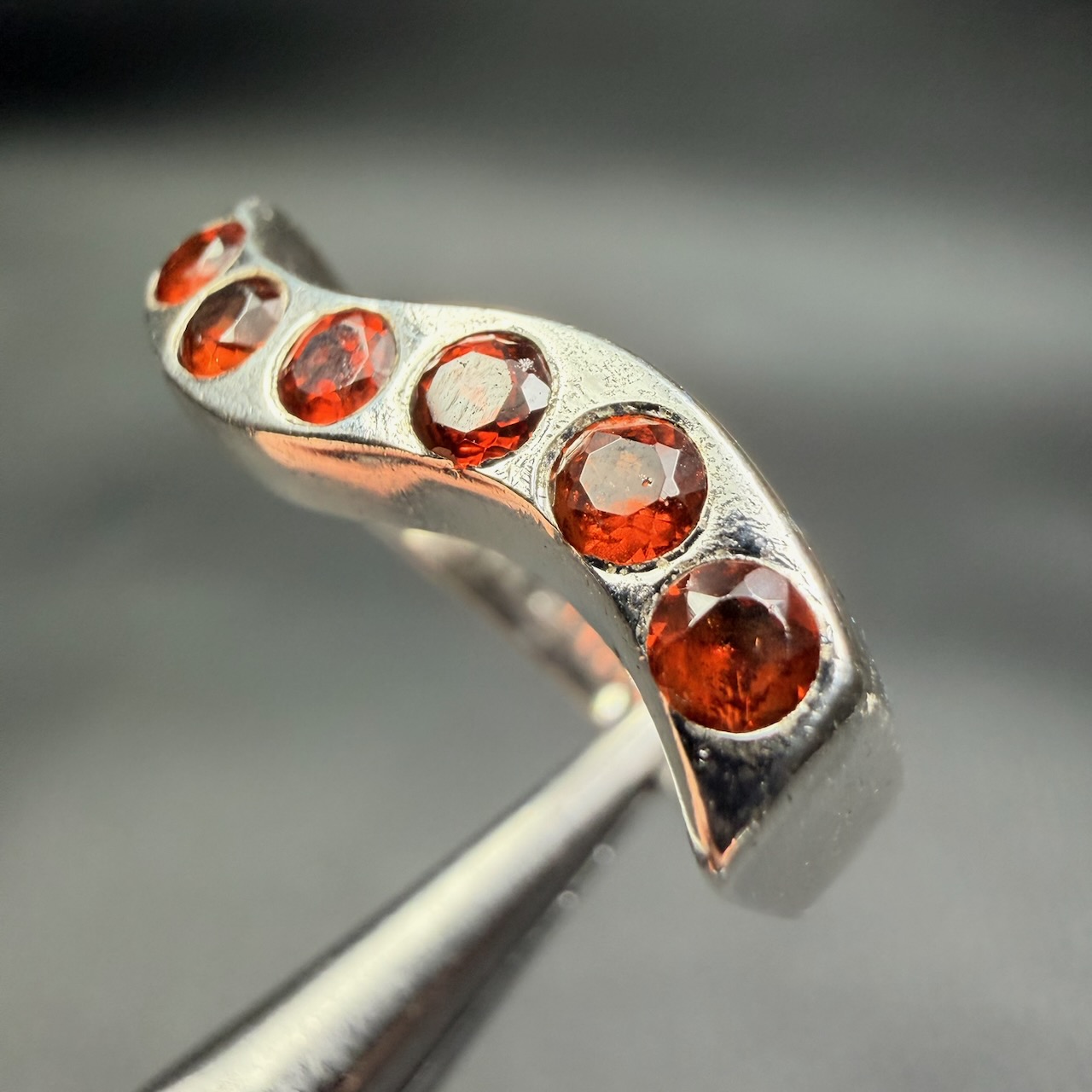 Le rouge du grenat n’est pas une couleur neutre. Il attire immédiatement l’attention, mais sans produire un effet lumineux excessif. Dans une bague en grenat gemme du Brésil, cette couleur est souvent perçue comme plus dense que brillante. Elle ne reflète pas fortement la lumière, elle l’absorbe en partie, ce qui renforce cette impression de profondeur.