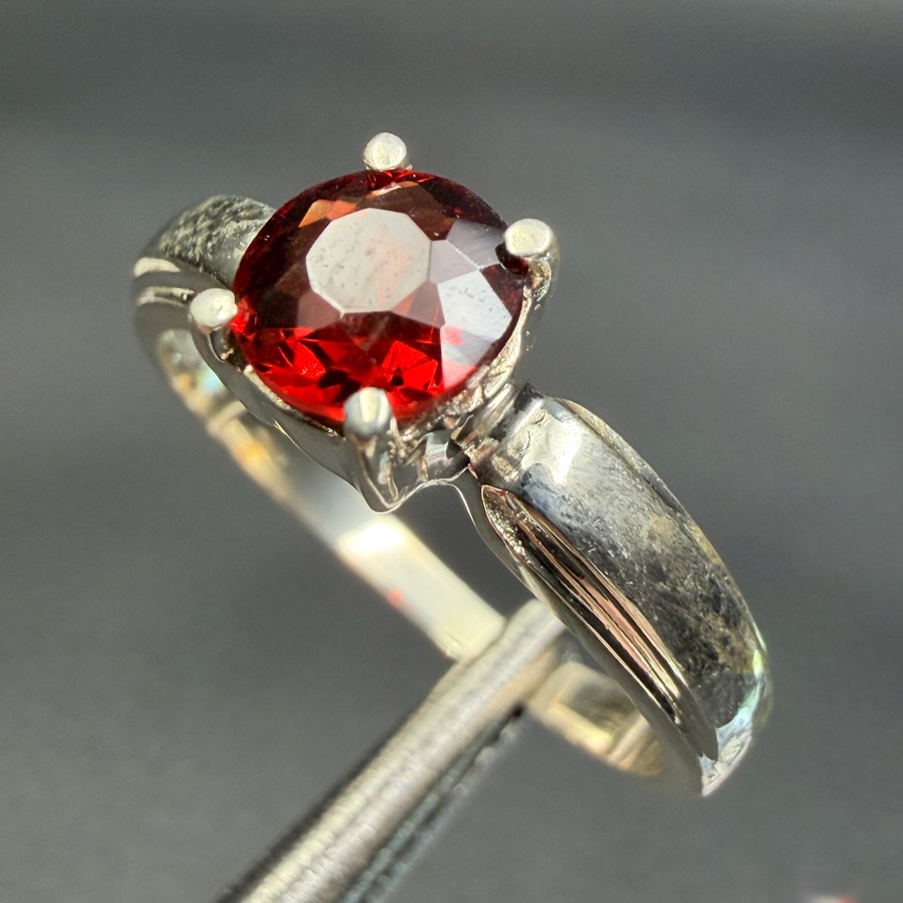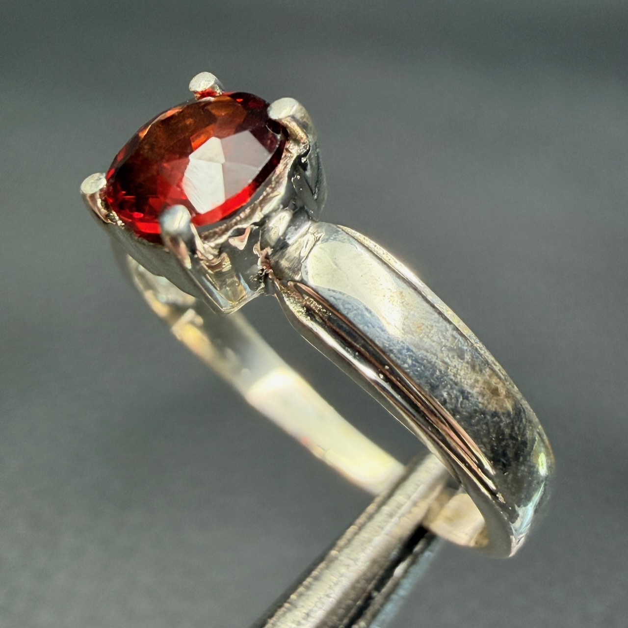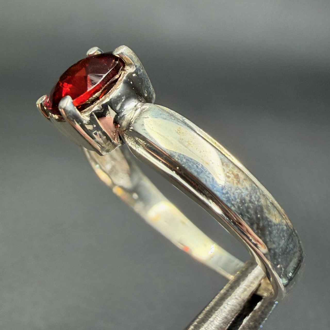 Dans une Bague en Grenat Rouge Gemme, la sélection se porte sur des pierres présentant une couleur homogène et une transparence suffisante pour permettre une réflexion correcte de la lumière.