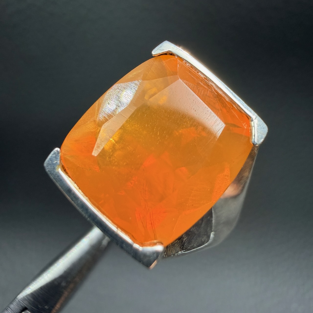 Un détail peu mis en avant : certaines opales de feu présentent ce que les gemmologues appellent des « flashs latéraux » très fins, presque filiformes, qui apparaissent quand la pierre est montée de façon cabochon et polie en lentille. Ces micro-flashs peuvent intensifier l’éclat de la bague en opale de feu lorsque la lumière se déplace.