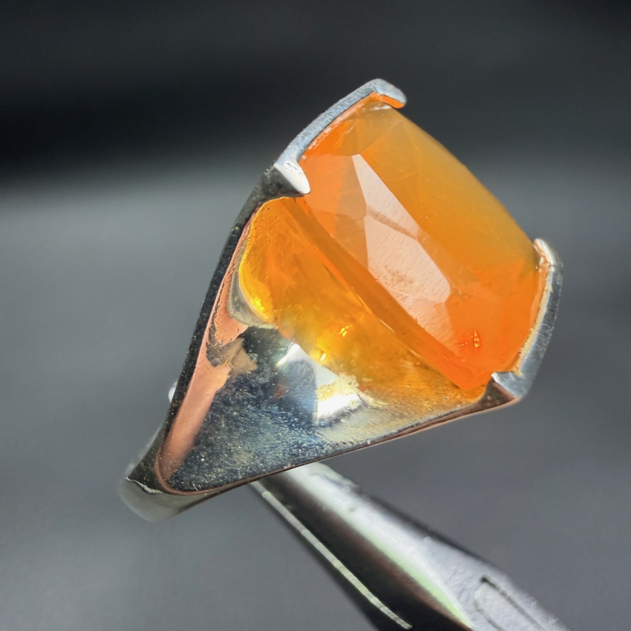 5. Changement léger de couleur sous lumière LED forte : Beaucoup de bagues en opale de feu montrent une nuance plus jaune sous lumière chaude (incandescente) et plus rouge sous lumière froide ou diffuse. Cet effet met en valeur la gemmologie de la pierre et renforce l’attrait pour la bague en opale de feu, car elle interagit avec l’environnement lumineux.