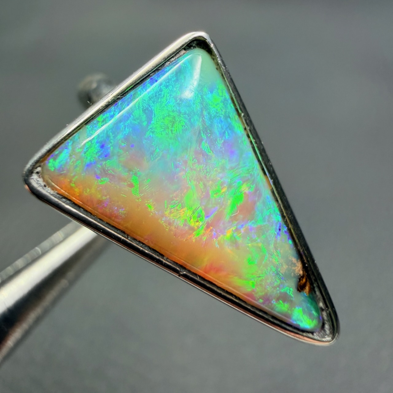 Cette gemme australienne relie celui qui la porte à la terre de feu et d’eau dont elle est issue. Elle est mémoire, souffle, reflet. Dans la lente rotation de ses couleurs, on peut lire l’histoire de la planète la patience des ères, le silence des sédiments, la danse de la lumière retrouvée.