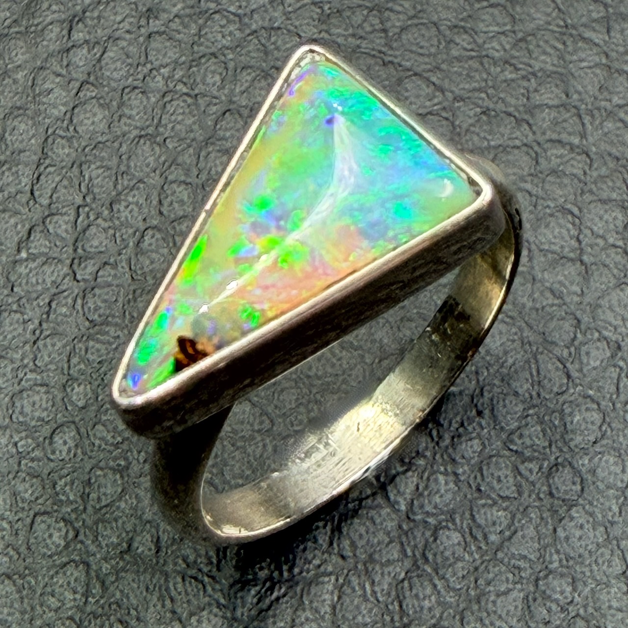 Une bague en opale noble du Queensland de belle intensité montrant des jeux de couleur dominés par les bleus, les verts et surtout les rouges est considérée comme une pièce de collection. Les rouges sont les plus rares, car ils exigent une taille et une orientation précises pour révéler toute leur intensité. Ce sont ces pierres-là que les connaisseurs recherchent, ces éclats de flamme suspendus dans la pierre.