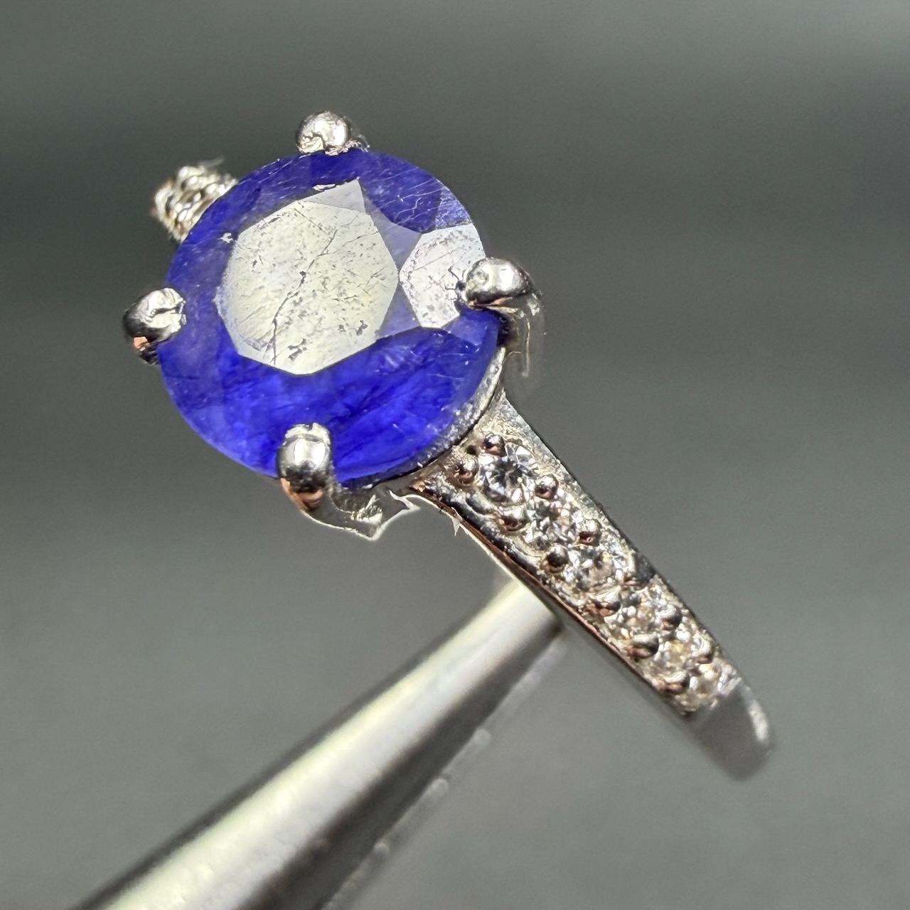 Dans une bague en saphir, ces structures internes témoignent des conditions de croissance du cristal.