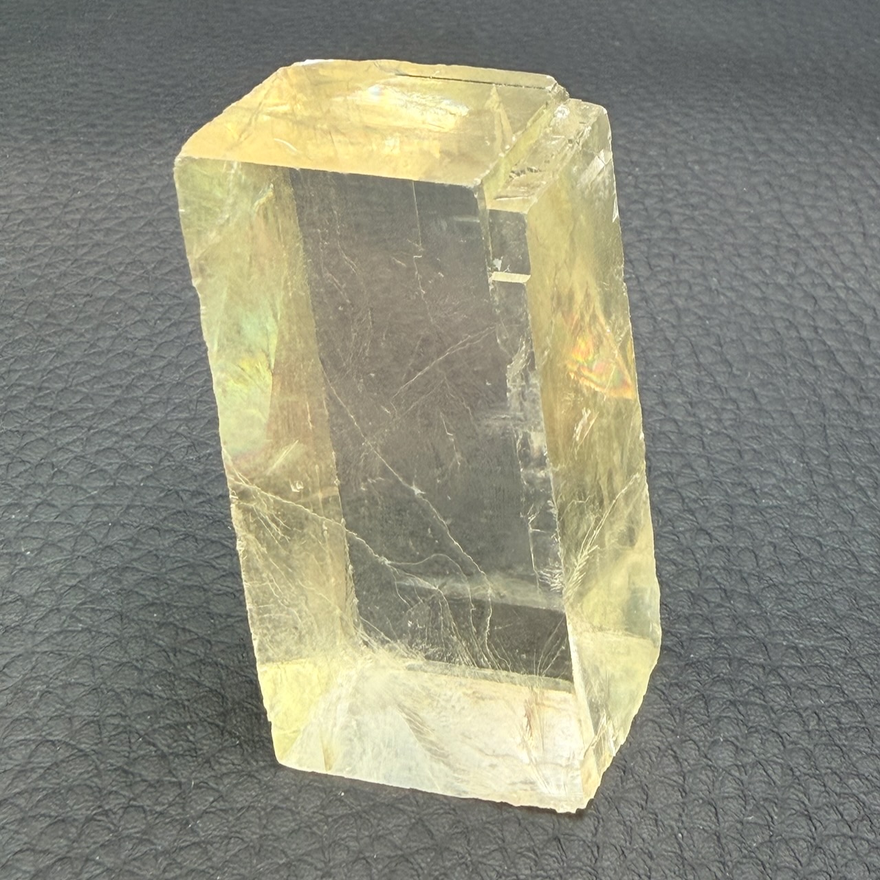 Dimensions de cette calcite optique 4,9 cm sur 2,4 cm sur 2 cm.