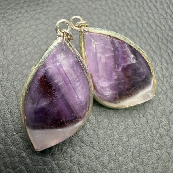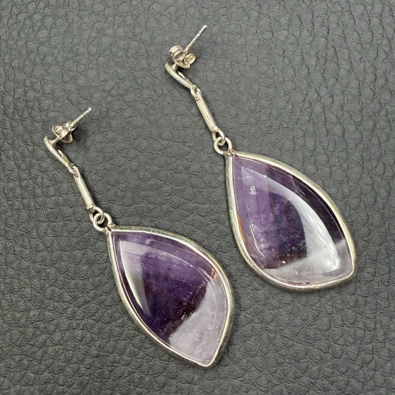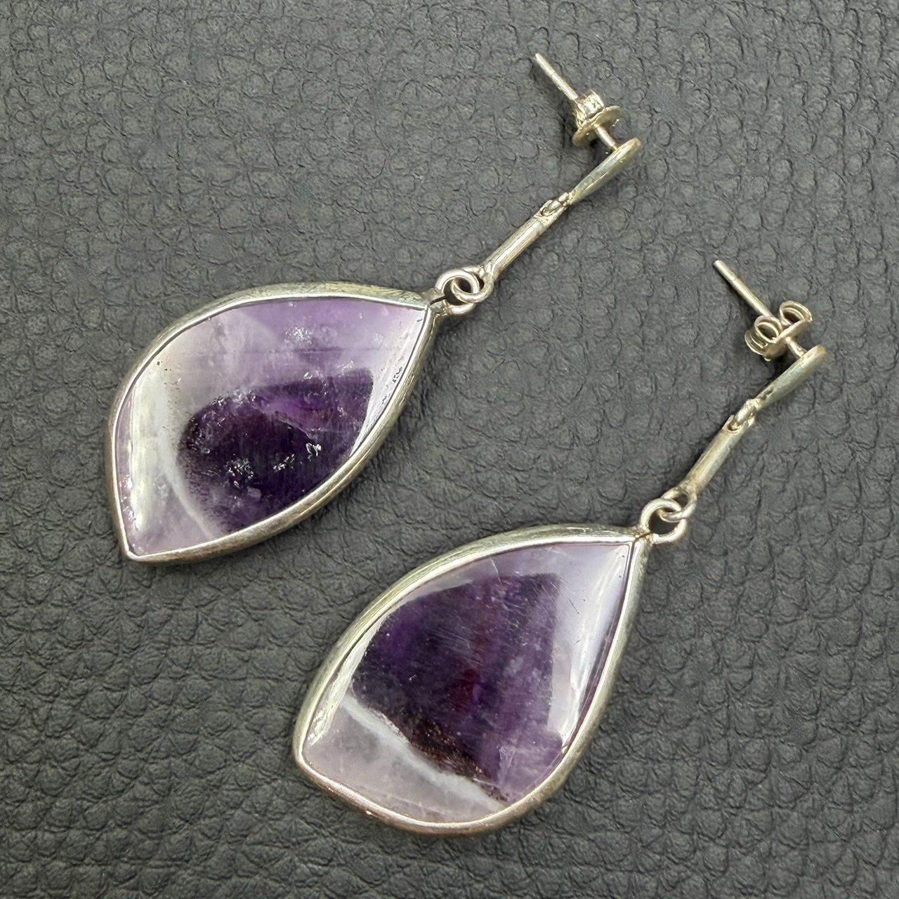 Taille des pierres ornant les boucles d’oreilles améthyste 3,6 cm sur 2,2 cm sur 0,6 cm.