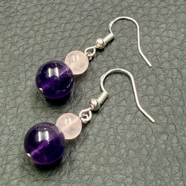 Longueur approximative des Boucles d’Oreilles Améthyste et Quartz Rose 3,7 cm.