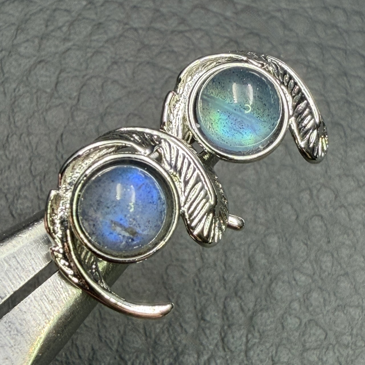 Dimensions des boucles d’oreilles en labradorite : 1 cm.