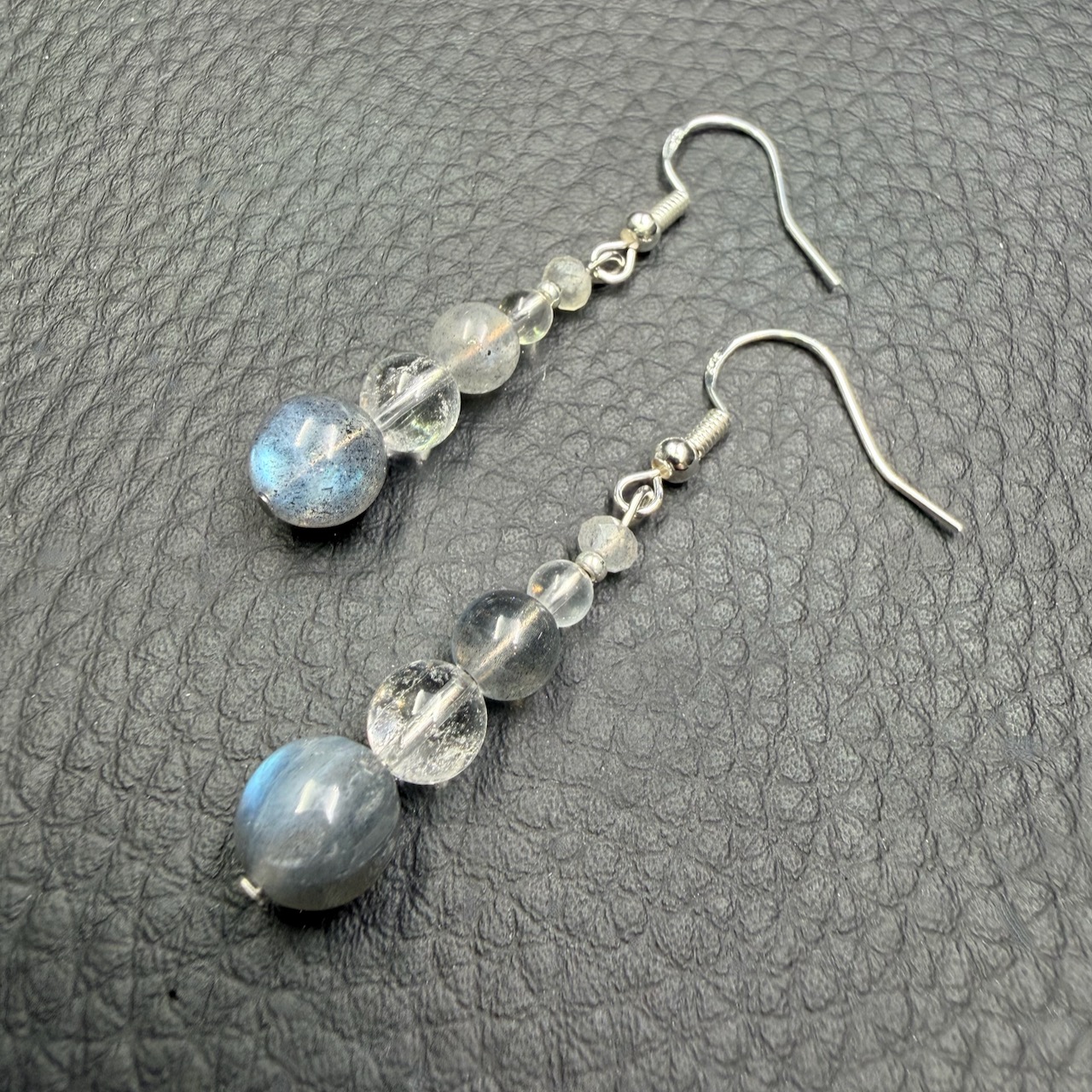 Dimensions des boucles d’oreilles en labradorite : 5 cm.