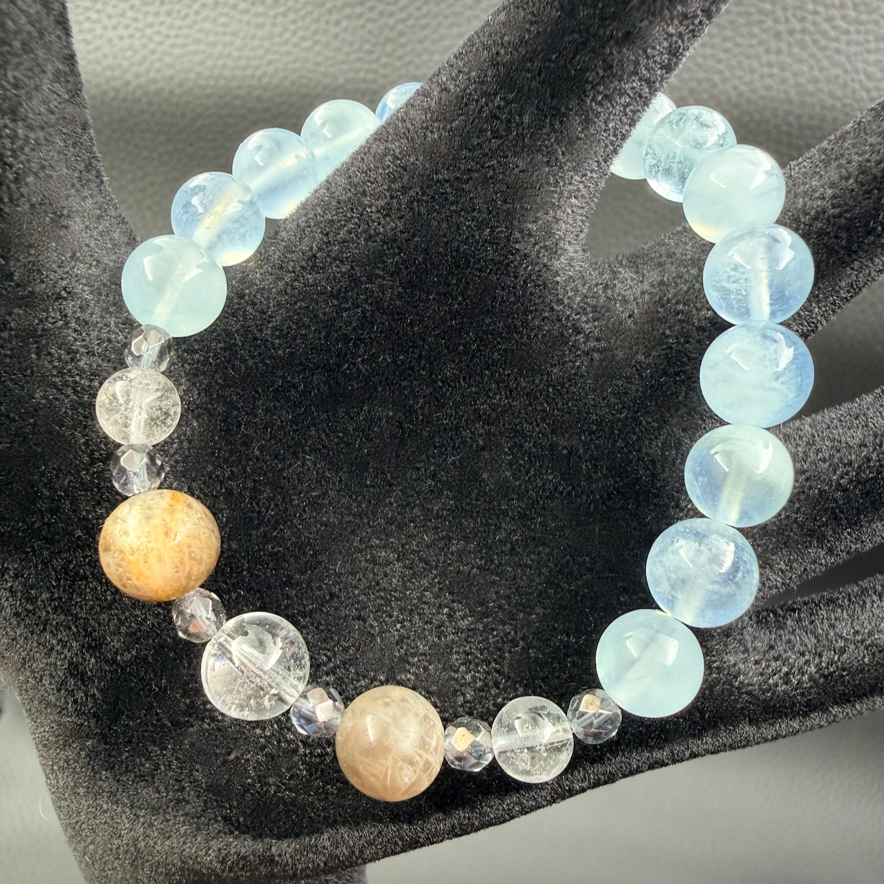 Une fois purifié, le bracelet aigue marine doit être rechargé, comme une source qu’on ranime après l’hiver. L’aigue marine aime la lumière douce du matin ou les rayons argentés de la lune montante. Cependant, pour préserver son éclat, il est préférable d’éviter les expositions directes et prolongées au soleil.
