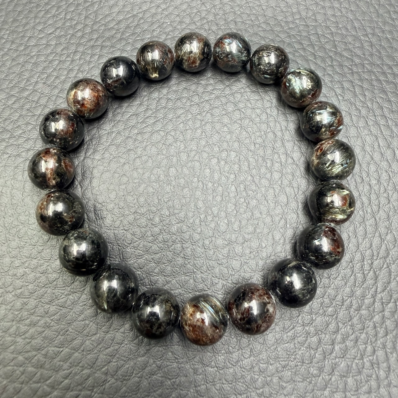 Le Bracelet en Astrophyllite devient alors un microcosme : un univers miniature où les constellations s’animent au rythme du corps. C’est une pierre qui attire le regard et retient la pensée.