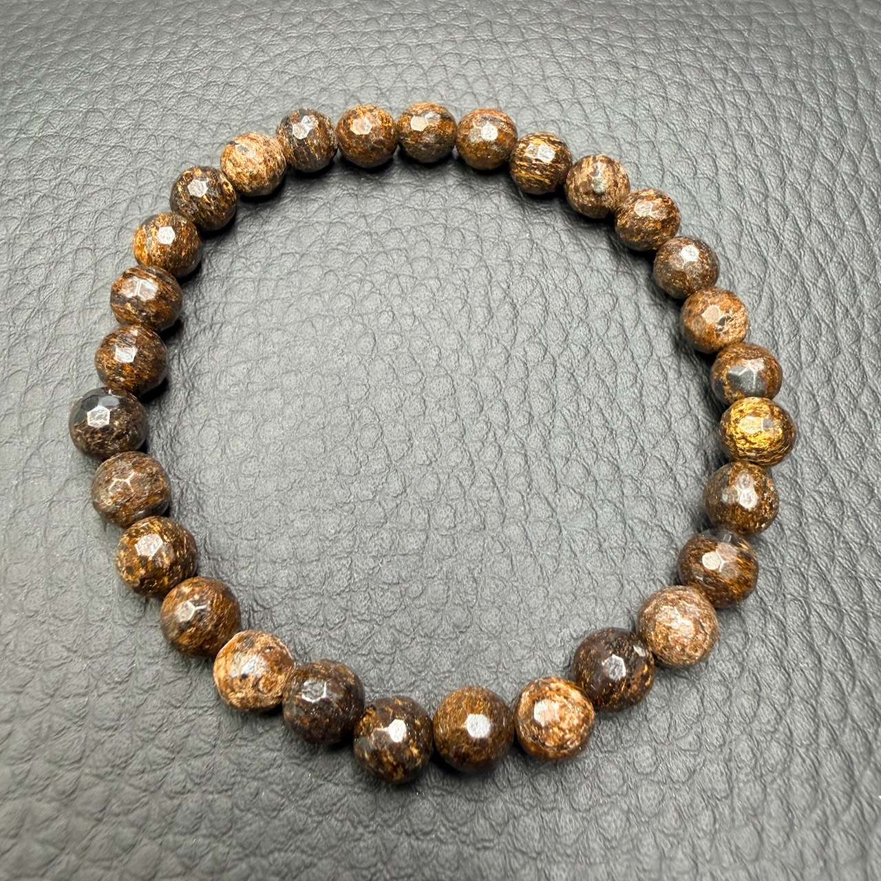 On associe souvent la bronzite à la capacité de se recentrer, d’affronter une situation avec lucidité et calme. Cette symbolique, largement répandue dans les traditions contemporaines de lithothérapie, s’accorde parfaitement à la forme même du bracelet : porté au poignet, il devient un rappel constant, un ancrage mobile qui accompagne chaque geste, chaque décision, chaque respiration.