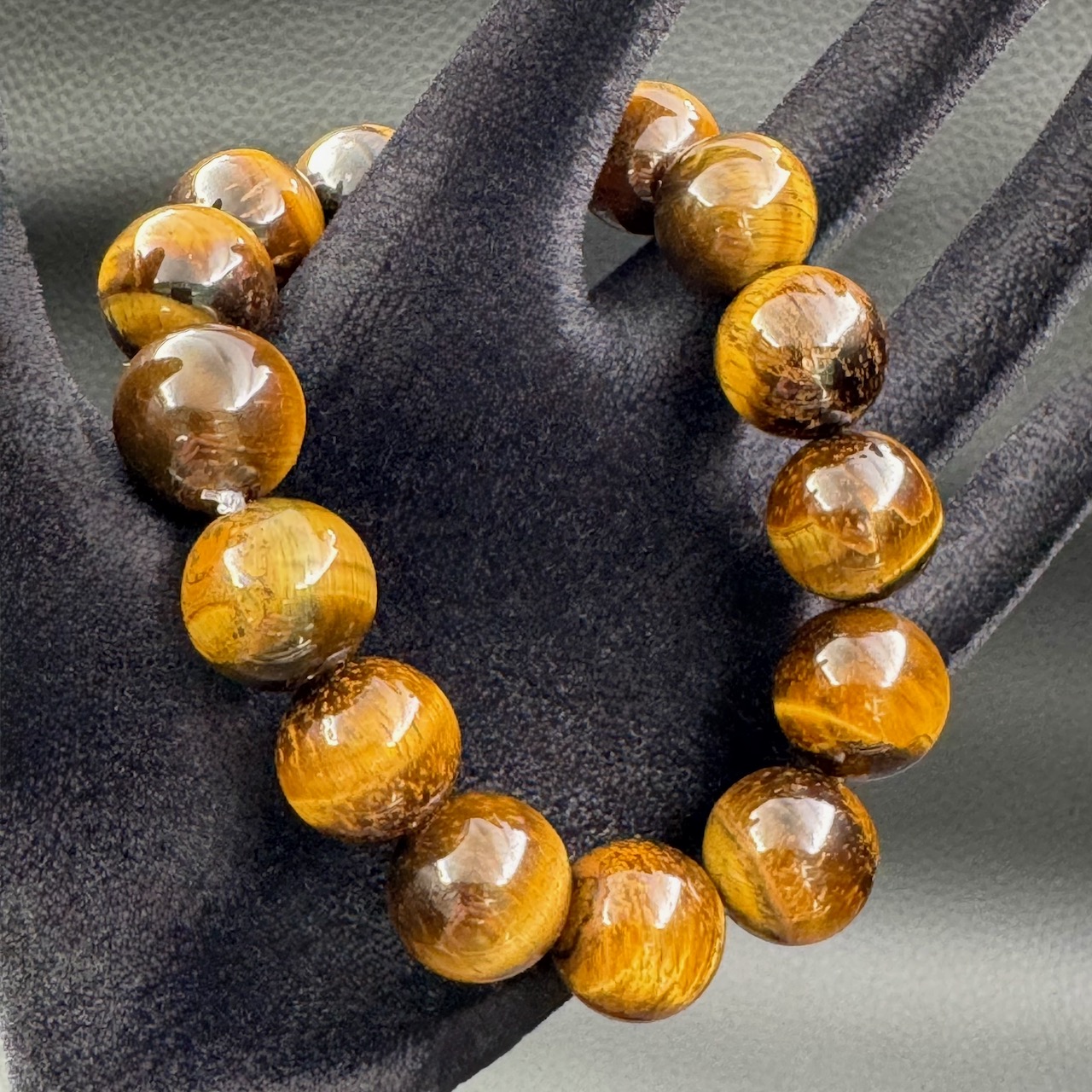Le Bracelet en Oeil de Tigre, fusion de tons tigrés jaune et marron, nous plonge dans l’univers fascinant de la minéralogie.