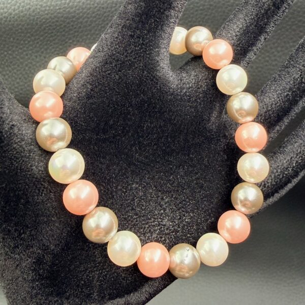 La nacre blanche illumine le poignet avec sobriété, la nacre grise ajoute une note contemporaine et raffinée, tandis que la nacre pêche insuffle une chaleur délicate. Ensemble, elles composent un bracelet équilibré, capable de séduire aussi bien les amateurs de bijoux naturels que les personnes en quête d’une pièce élégante et intemporelle.
