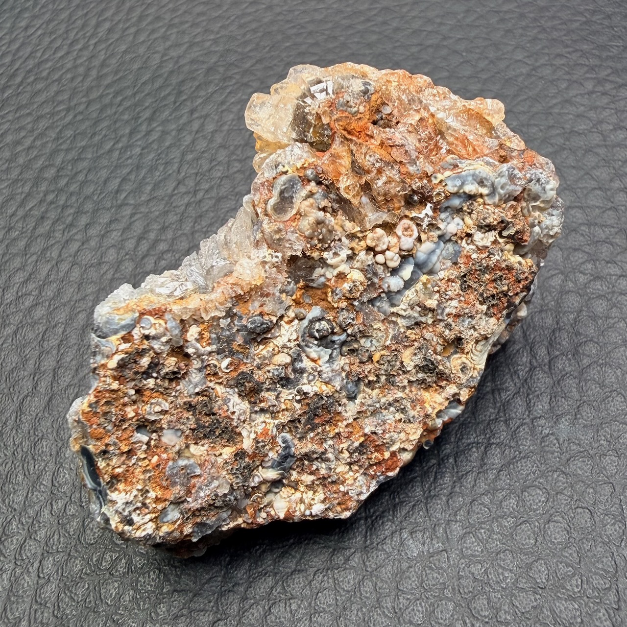 Sur le plan chimique, la calcédoine est composée de dioxyde de silicium (SiO₂), avec parfois des traces d’éléments métalliques ou d’inclusions microscopiques responsables de ses variations de couleur.