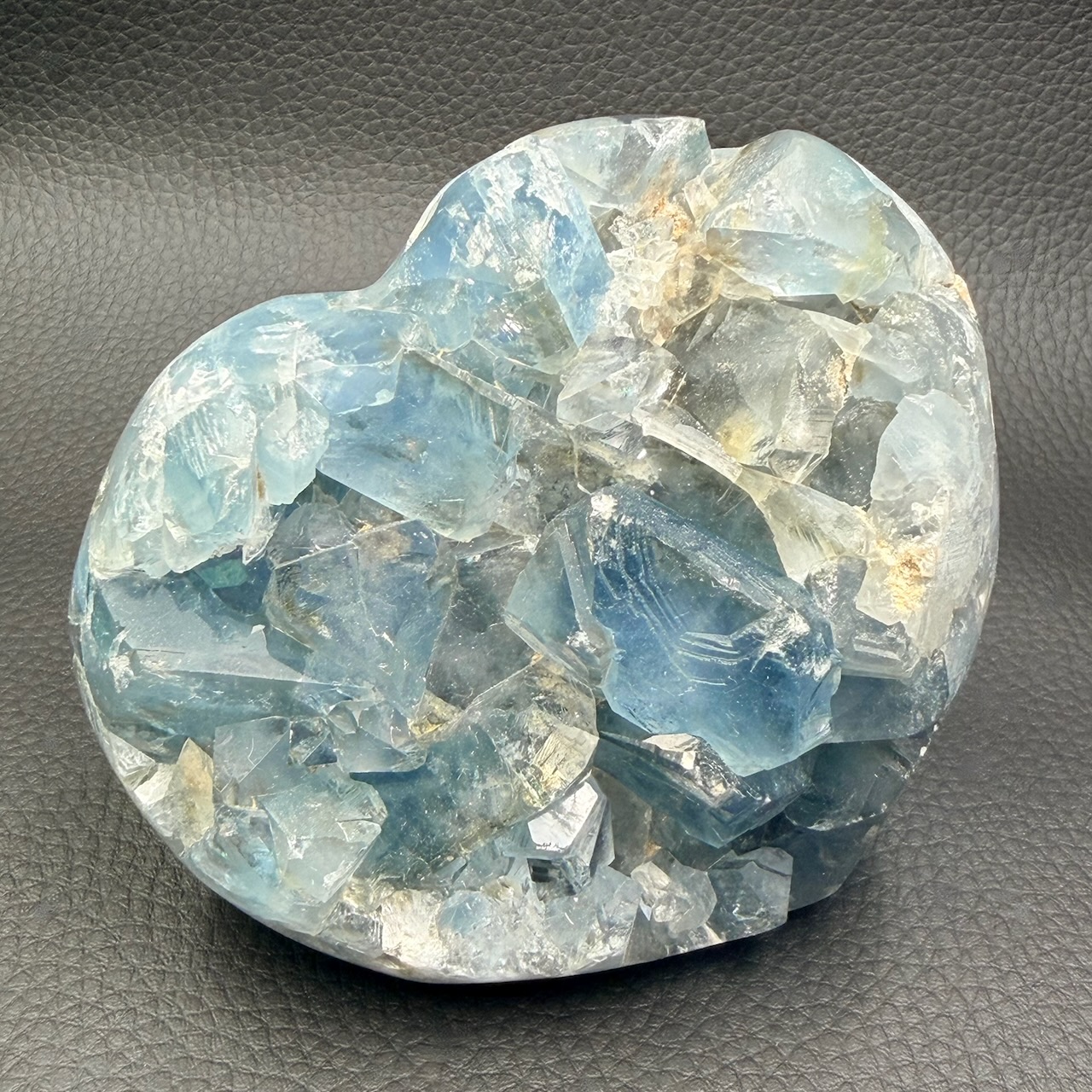 Ce minéral est très tendre, voilà pourquoi on ne trouve pas de bijoux en Celestine sur le marché.