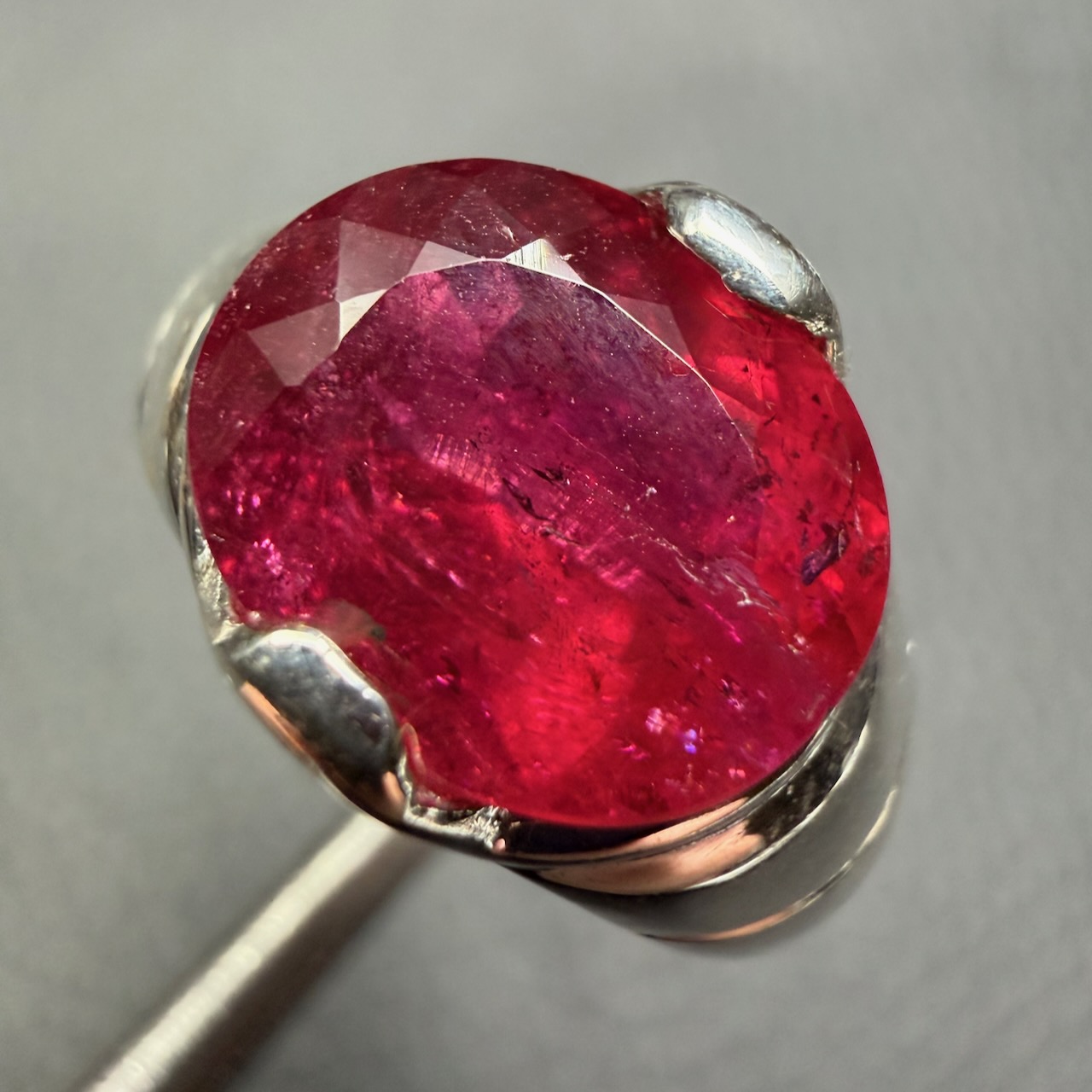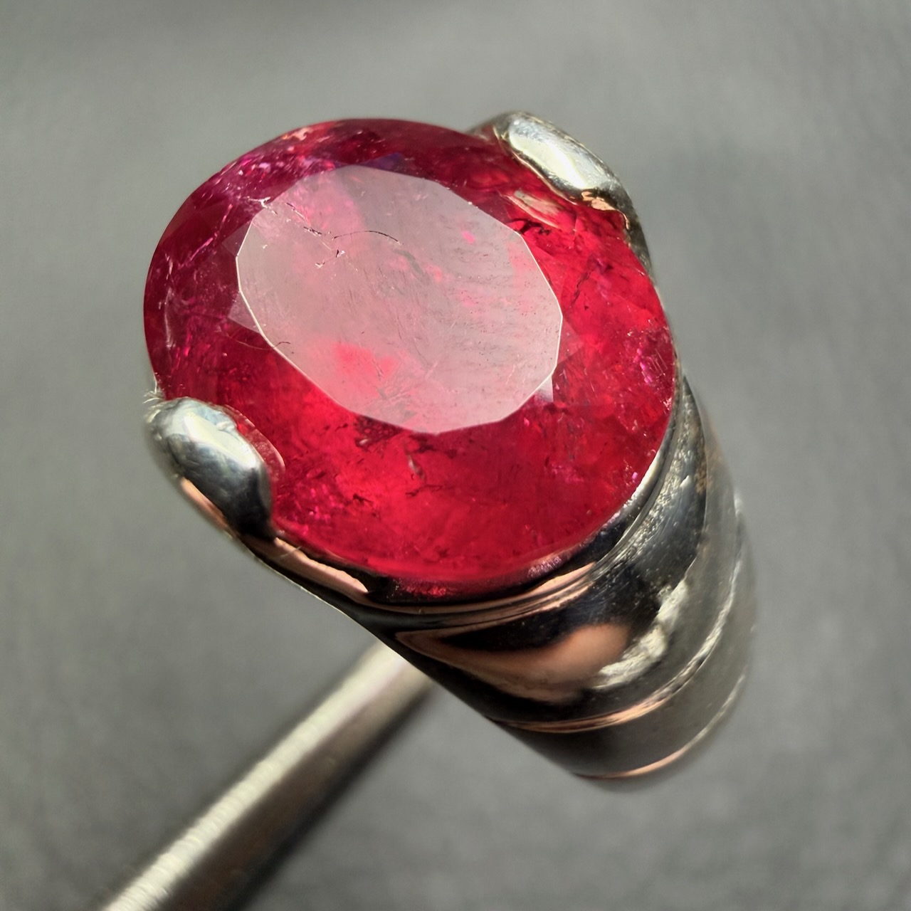 La Chevalière en tourmaline Rubellite s’inscrit dans une approche où la gemme occupe une place centrale, tant par sa couleur que par sa structure interne. Son intérêt repose moins sur une uniformité parfaite que sur la richesse de ses nuances et la manière dont la lumière interagit avec la pierre.