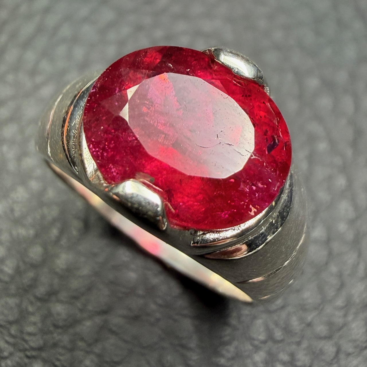 Contrairement à d’autres pierres rouges, la tourmaline rubellite présente une signature visuelle souvent plus vive, avec une saturation élevée et une certaine profondeur de couleur. Une Chevalière en tourmaline Rubellite exploite ces caractéristiques en offrant une surface suffisamment large pour révéler pleinement les variations internes de la pierre.
