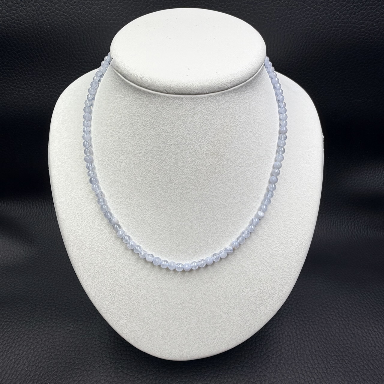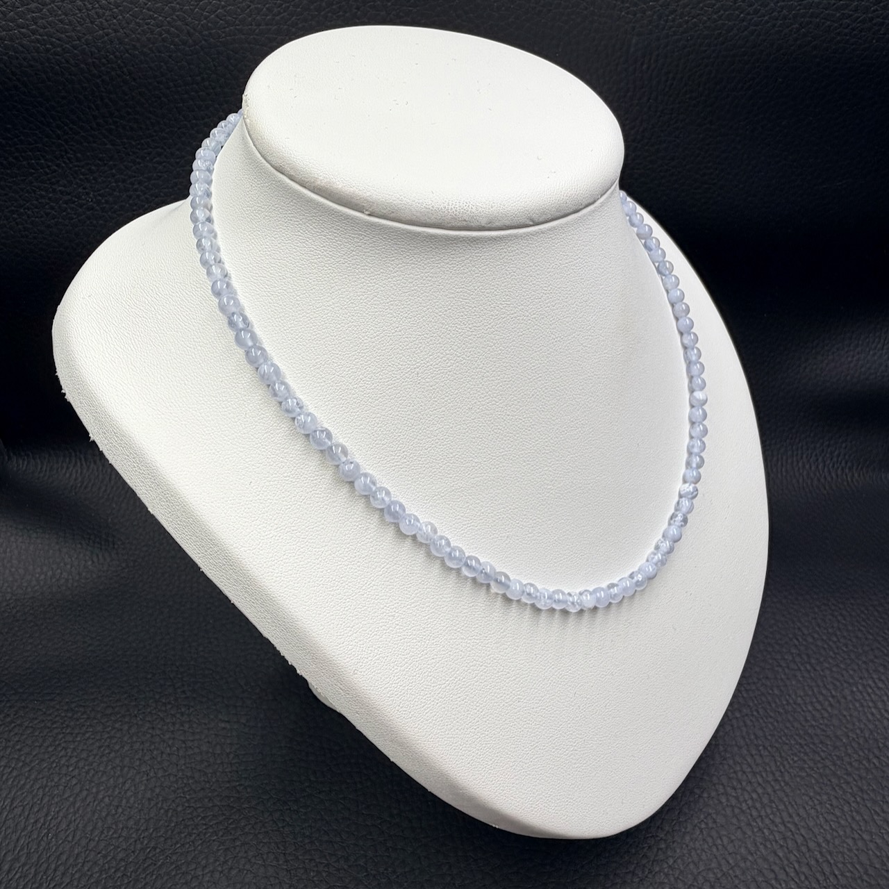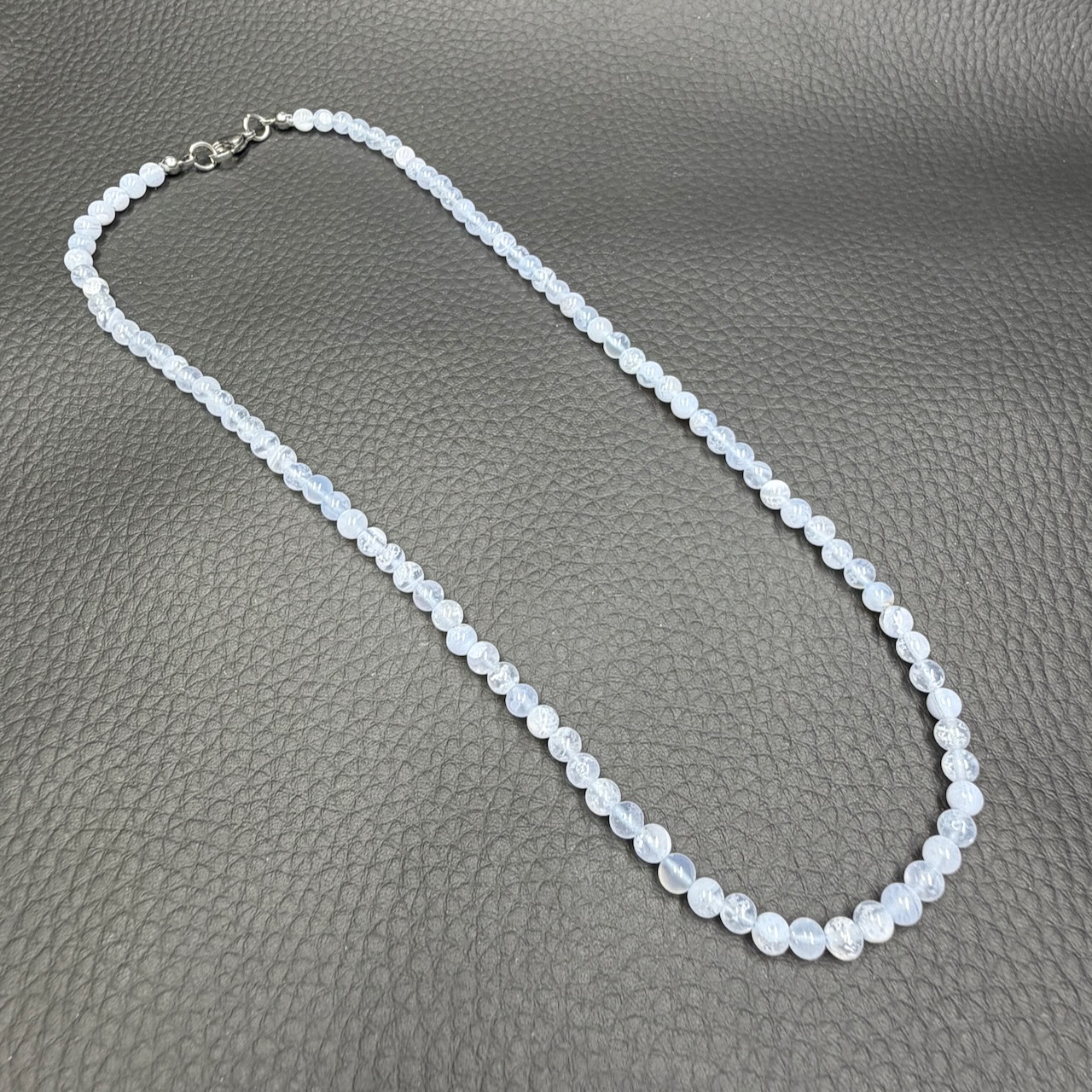 Taille du collier en calcédoine 45 cm de longueur.