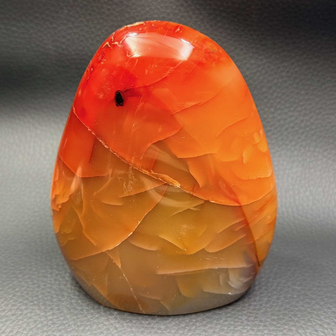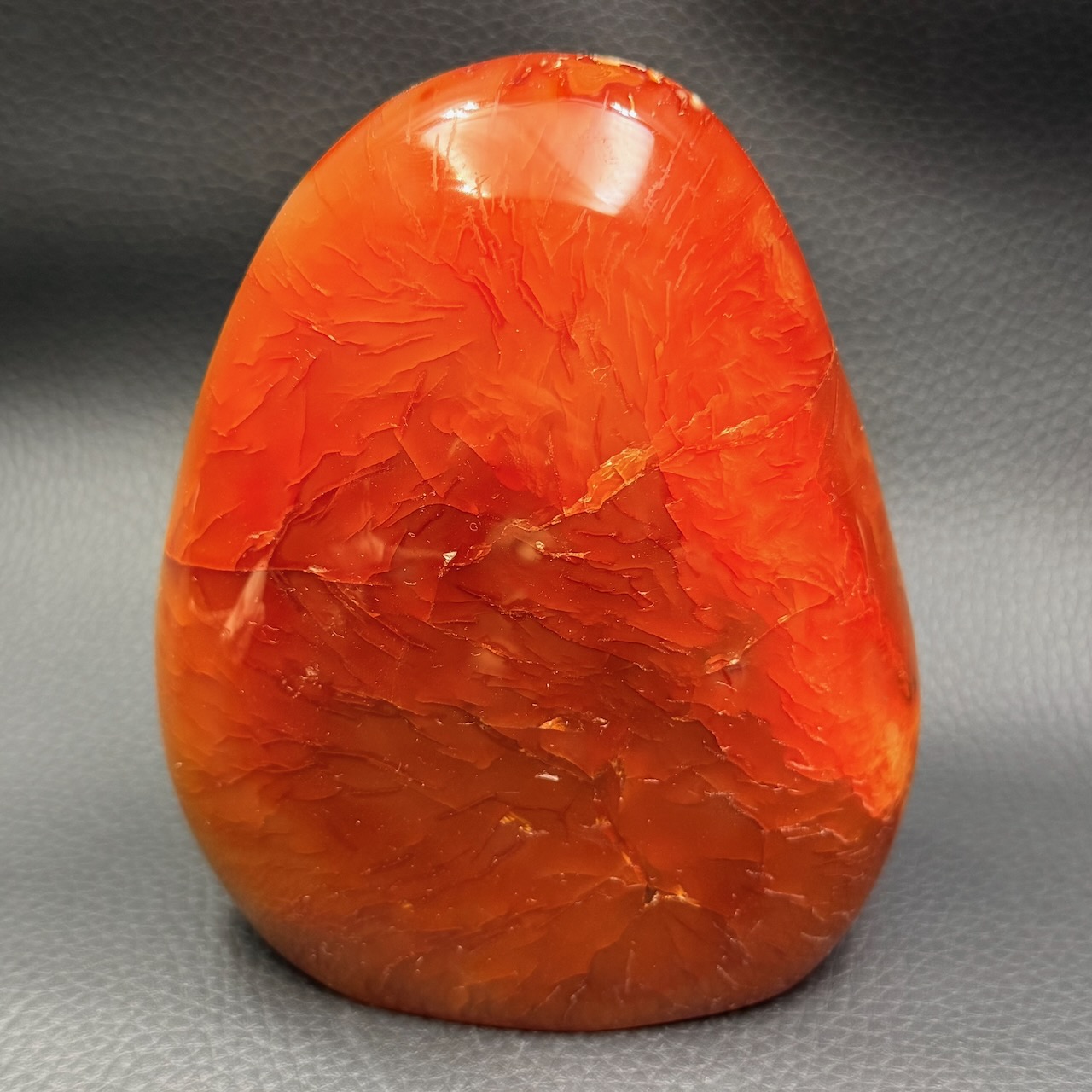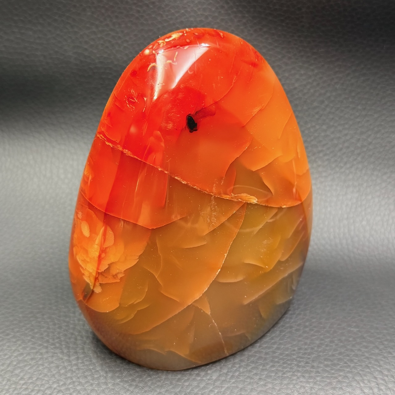 Dimensions de la cornaline 11,9 cm sur 10 cm sur 6 cm.