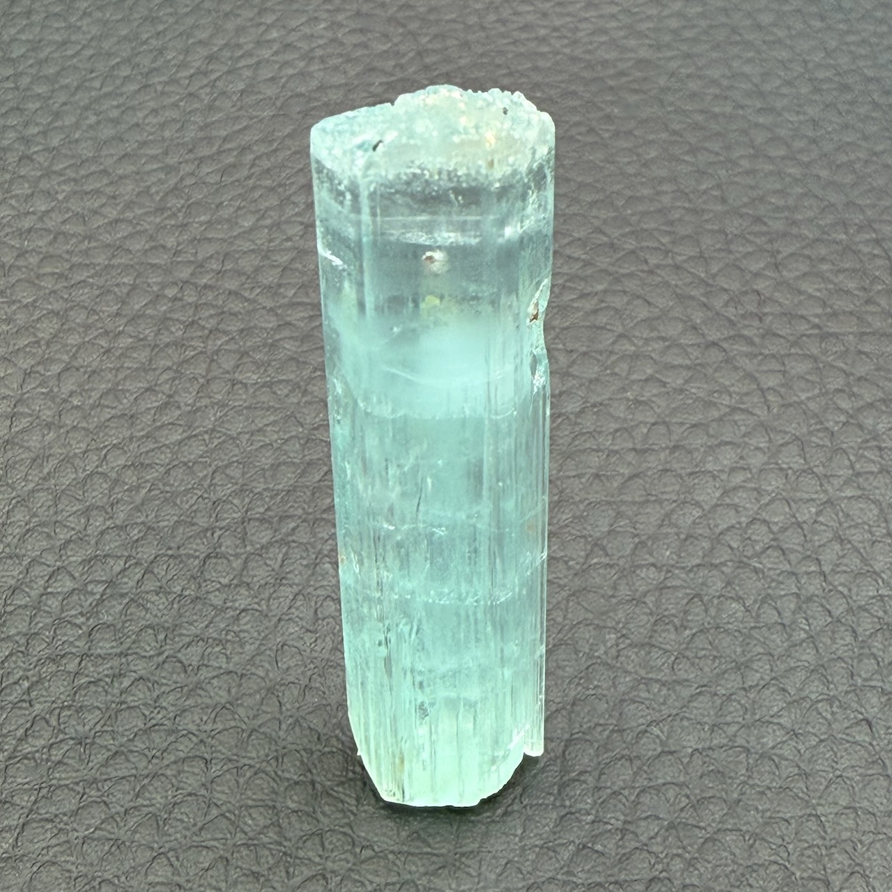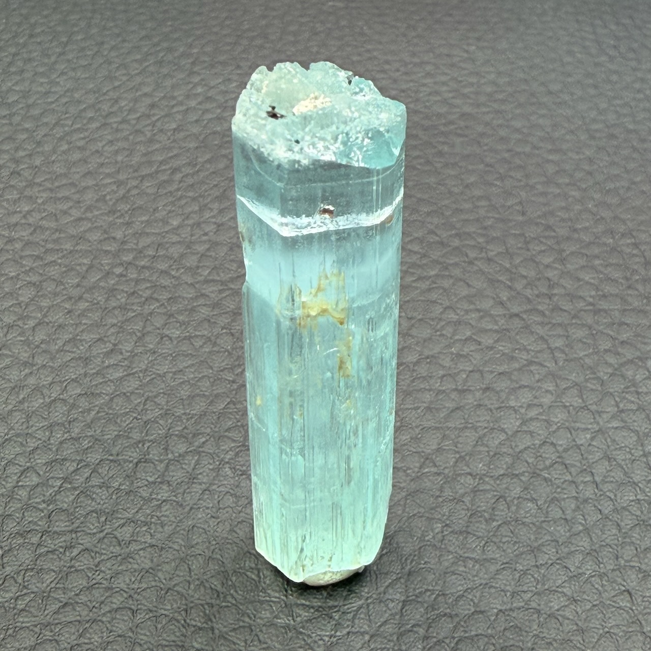 La couleur est un facteur clé : une teinte bleu ciel limpide avec saturation modérée à forte sans dominante verte ni grisâtre est préférée. Le terme « aigue marine royal » désigne un bleu pur et profond. Gemmologiquement, la saturation et la tonalité doivent être équilibrées. Trop pâle, le cristal paraît peu précieux ; trop foncé, il peut sembler presque bleu moyen ou gris.