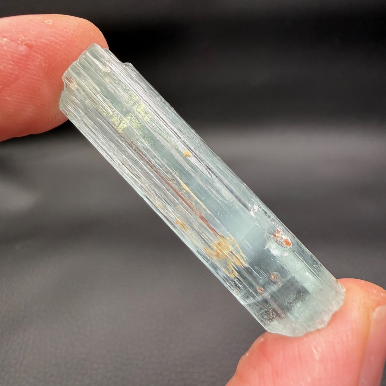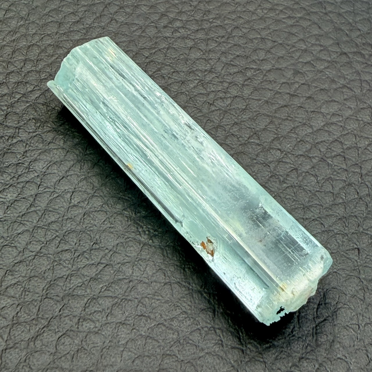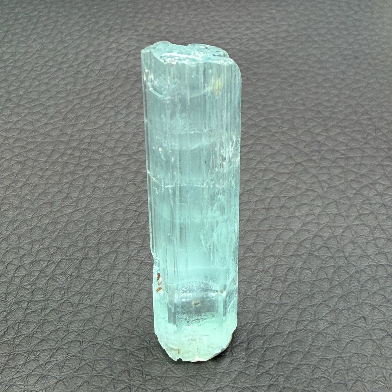 Taille du cristal d’aigue marine marine : 4,9 cm sur 1,3 cm sur 1 cm.