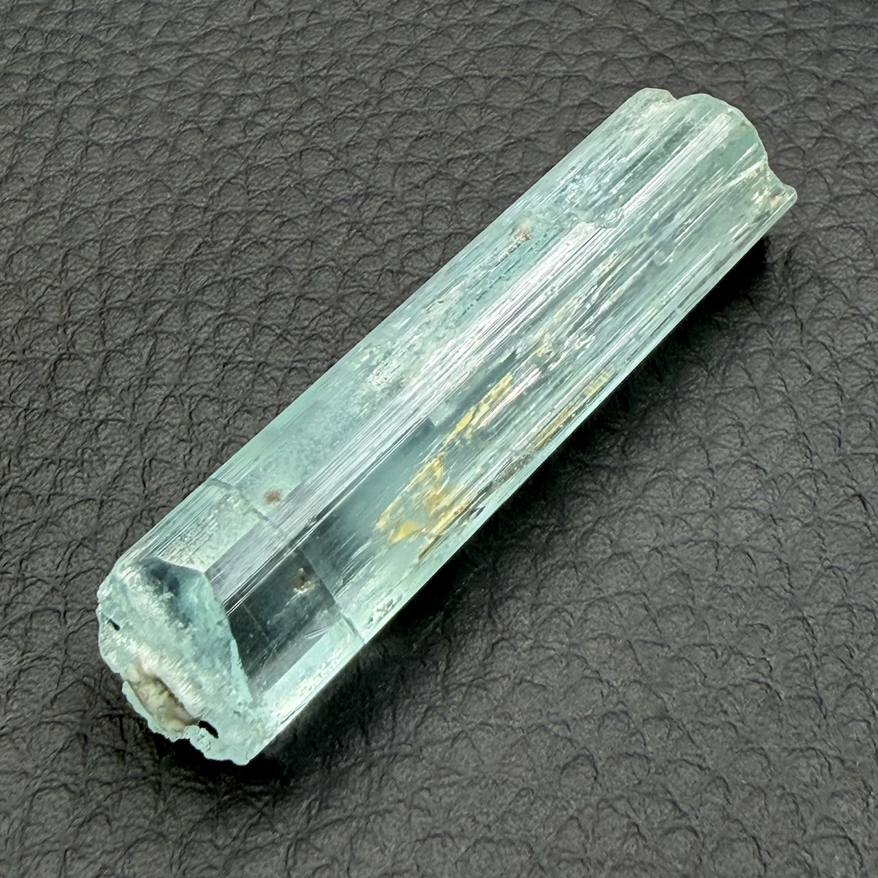 Le poids spécifique (densité) du béryl varie d’environ 2,68 à 2,80 selon les impuretés. Le Cristal d’Aigue Marine bien formé présente un prisme hexagonal, souvent retaillé en gemme facettée (émeraude, brillant, ovale, coussin). La taille met en valeur la couleur, la clarté et la dispersion chromatique.