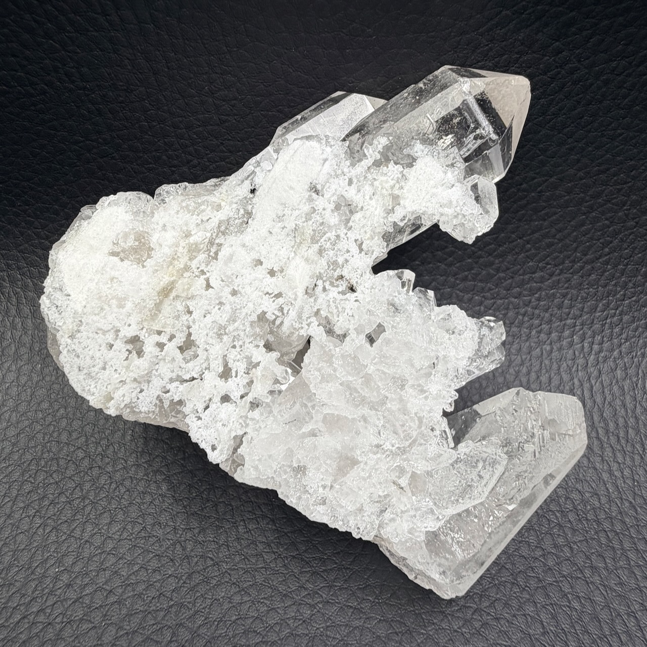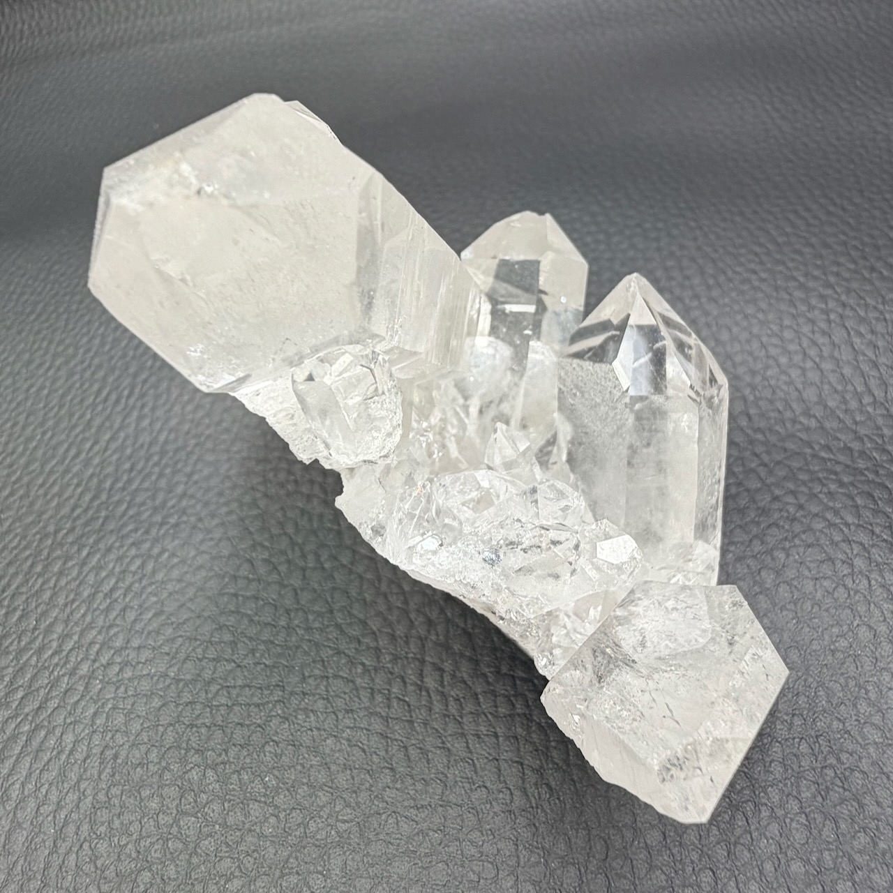 Il appartient à la grande famille des quartz comme l’améthyste et la citrine, mais se distingue par sa transparence quasi absolue cette translucidité parfaite que la druse brésilienne incarne avec splendeur.