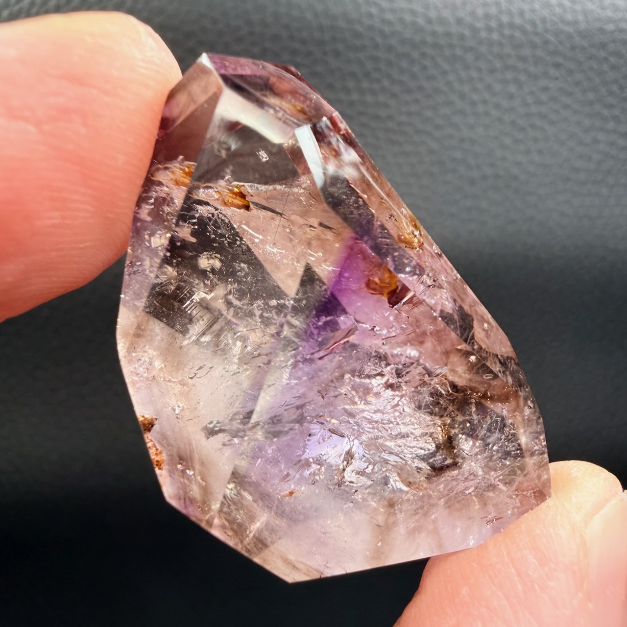 Inclusions visibles sous forme de filaments, fantômes d’améthyste, brillance métallique |