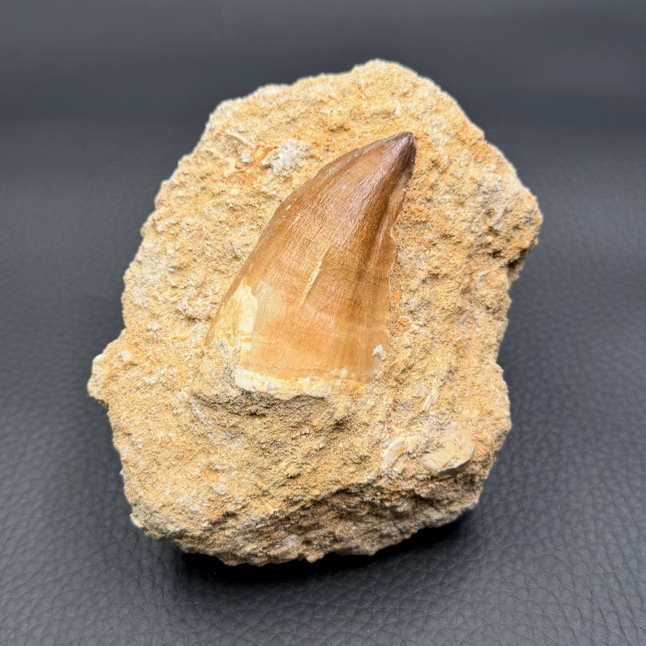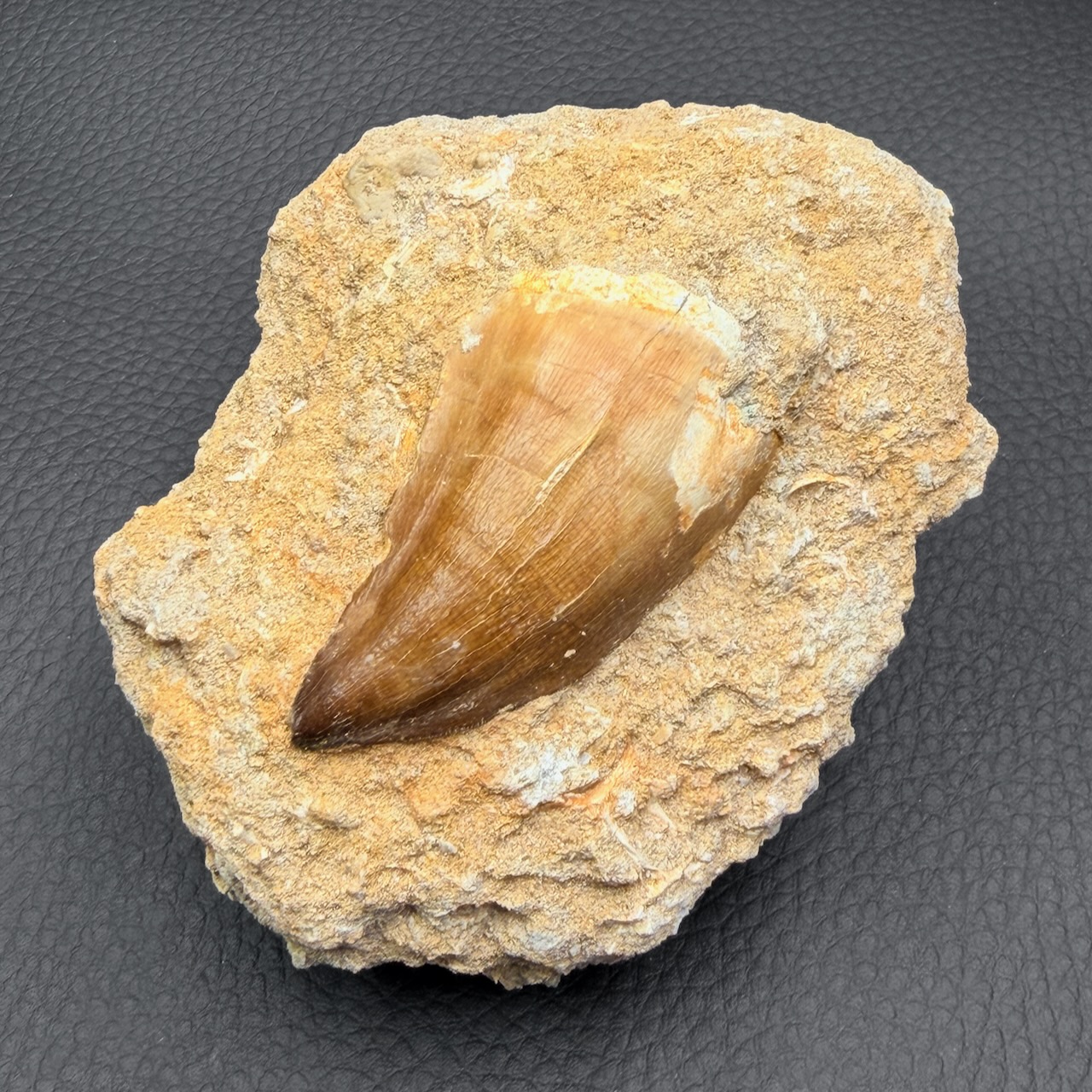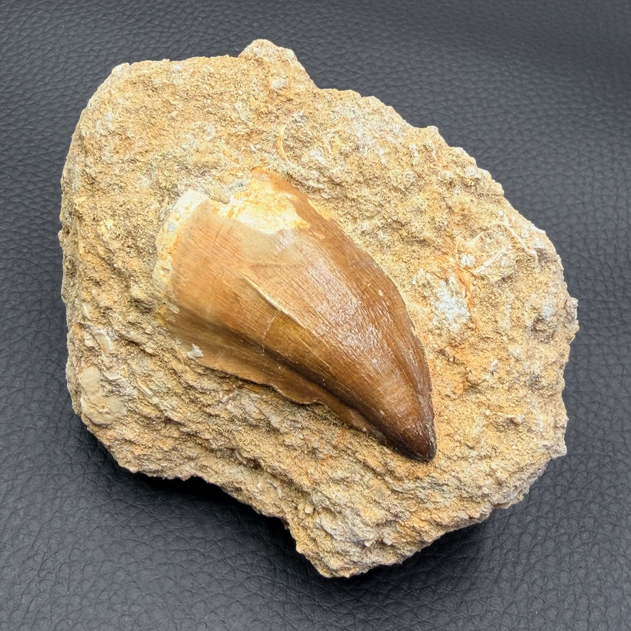 La dent de mosasaure est un fossile unique de collection, une trace de la vie sur terre avant notre ère.