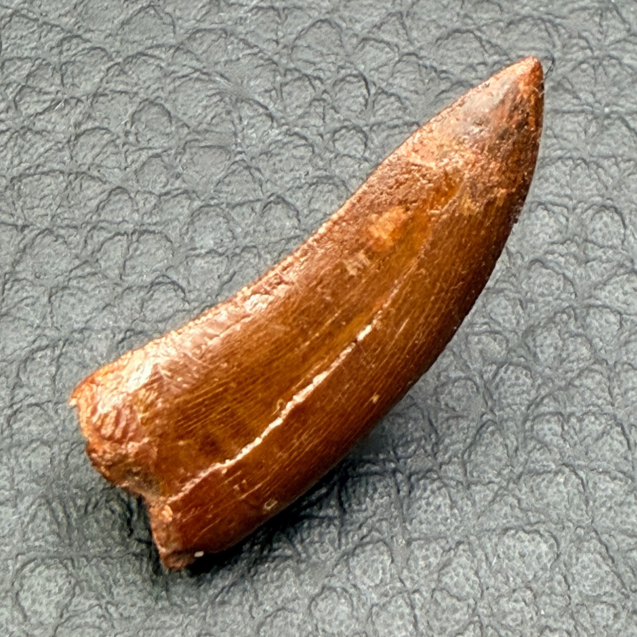 Taille de la dent de raptor 2,5 cm sur 0,9 cm sur 0,5 cm.