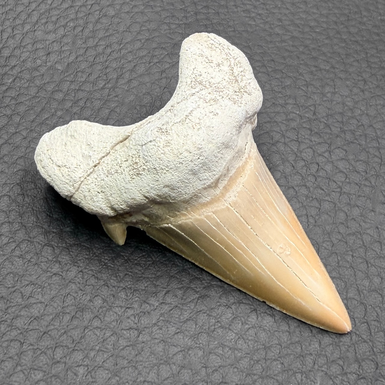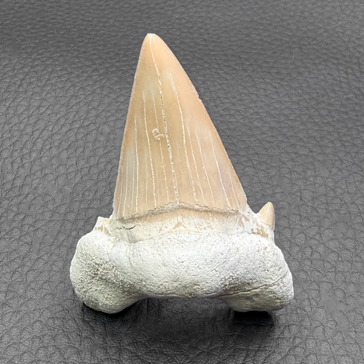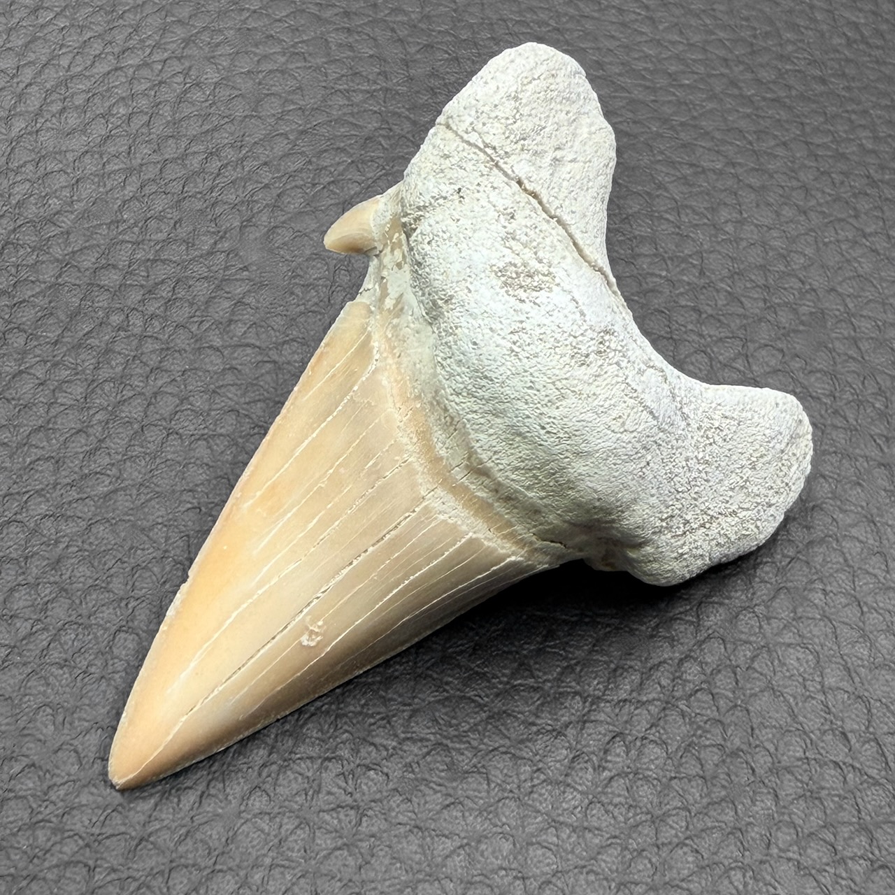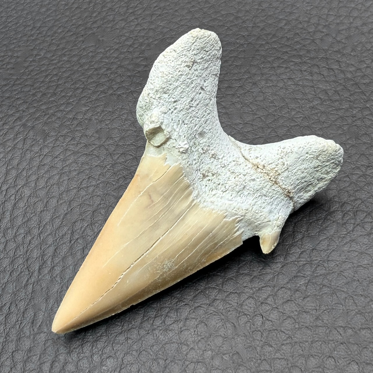 Taille de la dent de requin fossile 6,2 cm sur 4,4 cm sur 1,8 cm.