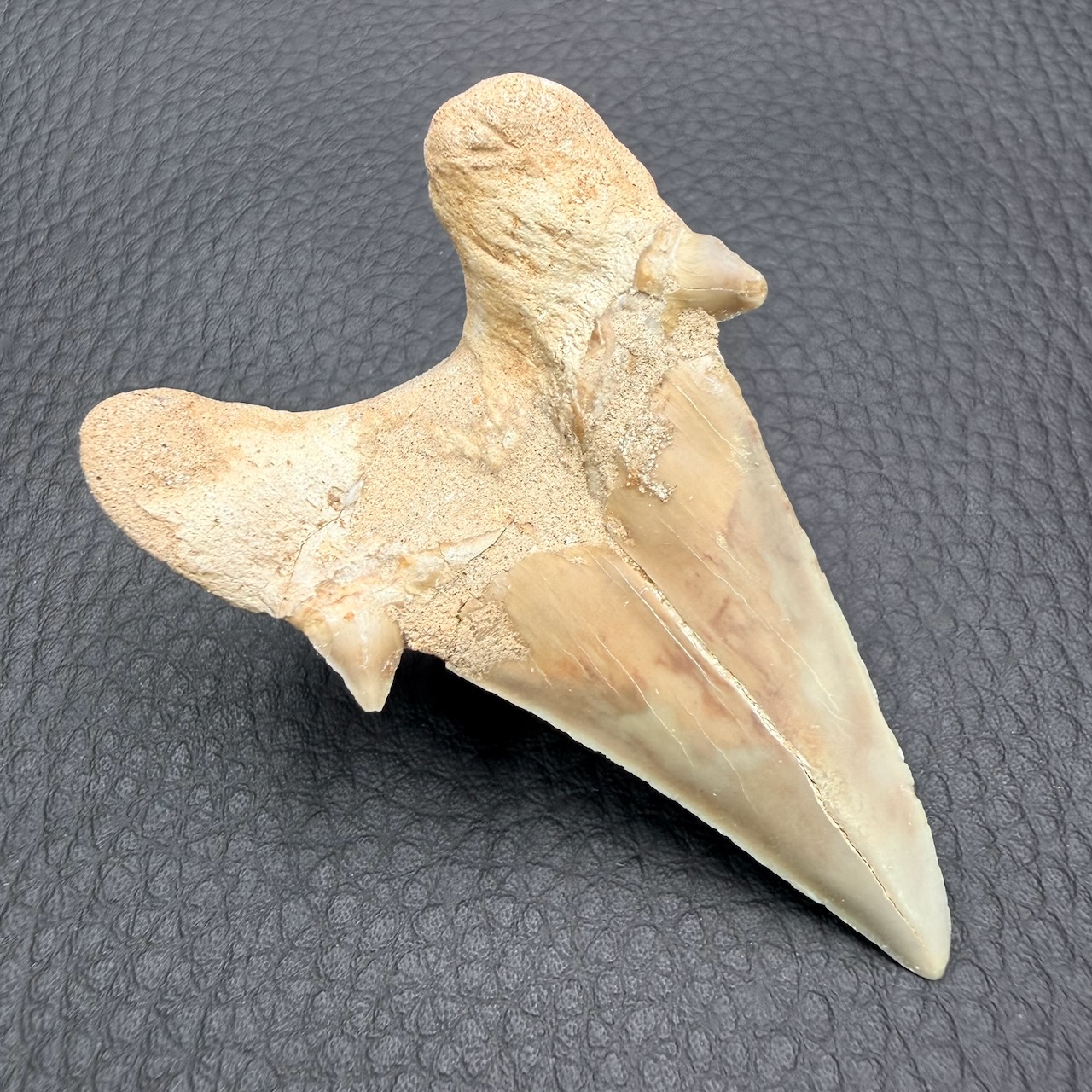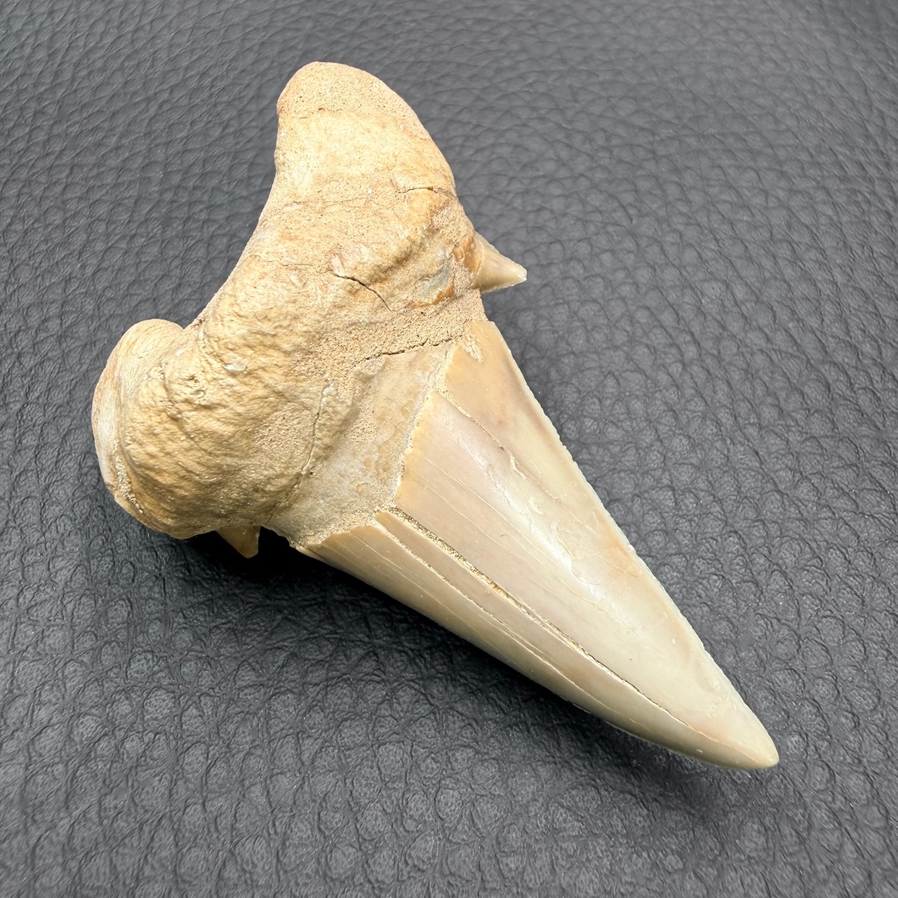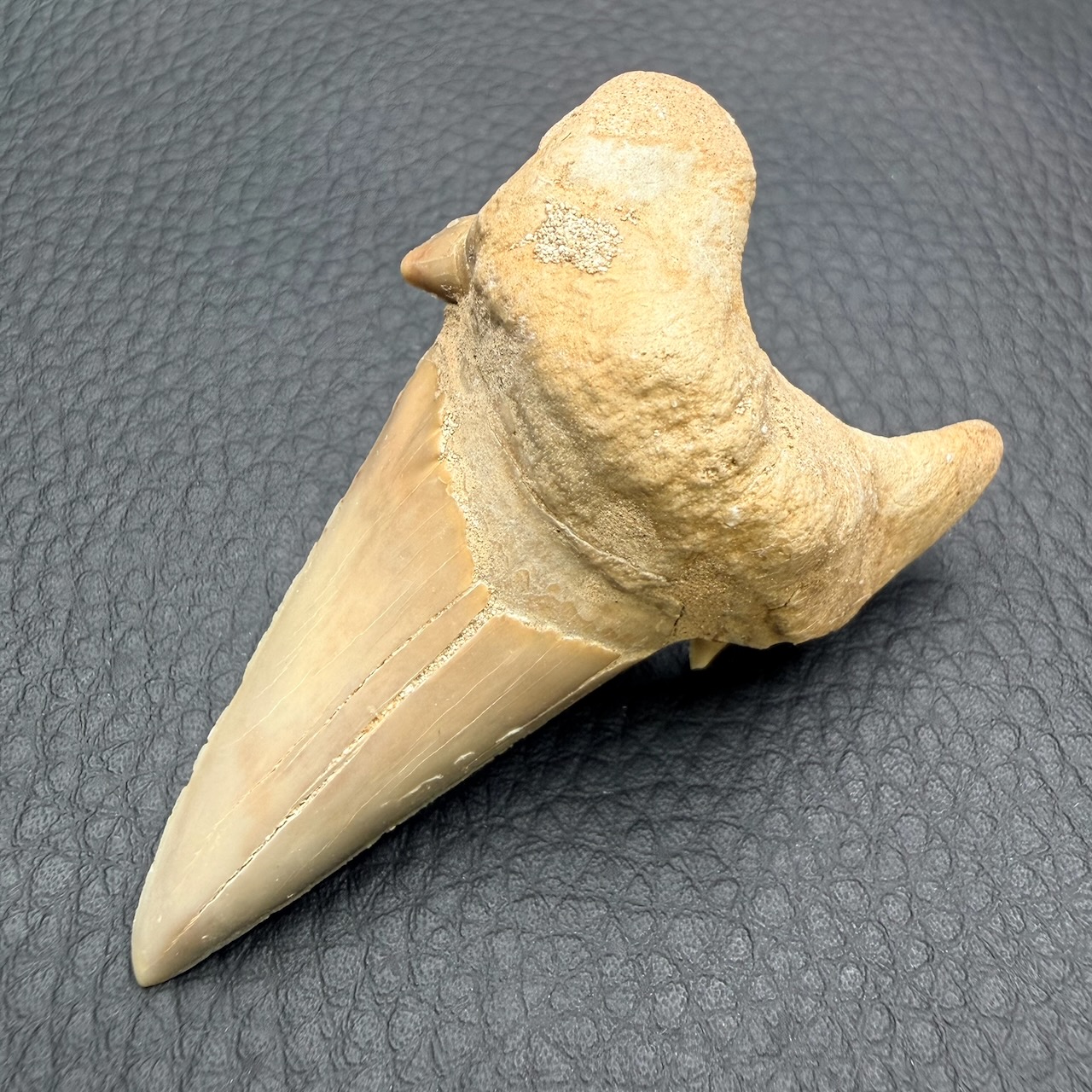 Taille de la dent de requin fossile 6,2 cm sur 4,1 cm sur 2,2 cm.