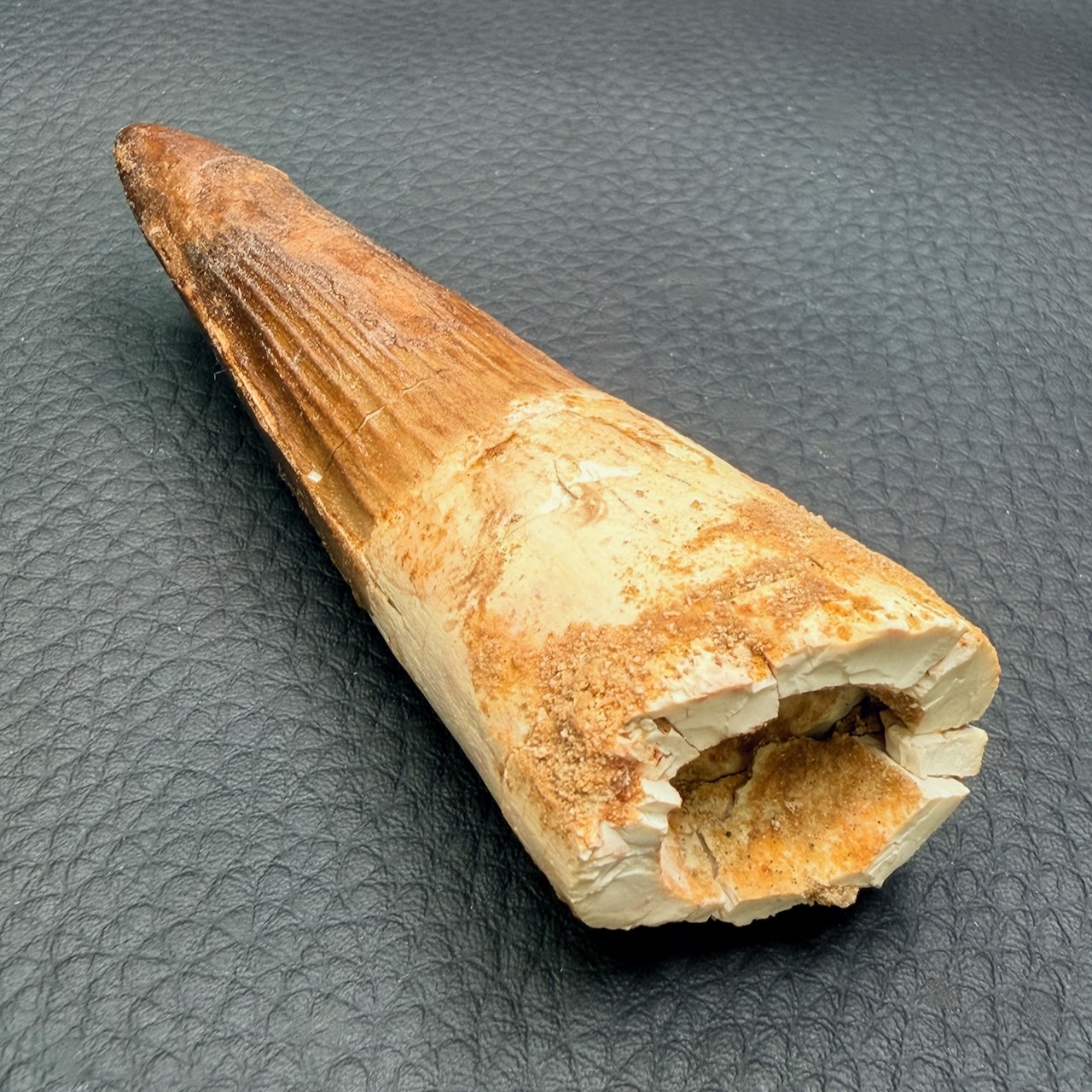 Taille de la dent de spinosaure 9 cm sur 3 cm sur 2,1 cm.