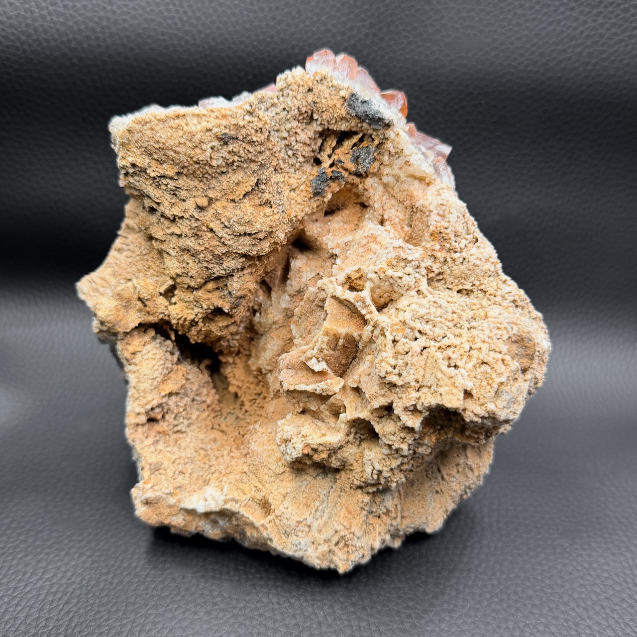 Le quartz hématoïde se forme par un processus de cristallisation en présence d’hématite. Les inclusions d’hématite se dispersent dans le quartz au fil du temps, créant des motifs uniques et des variations de couleur. Ce phénomène de formation donne à chaque spécimen de quartz hématoïde une apparence distincte. Outre l’hématite, d’autres minéraux comme la limonite peuvent également contribuer à sa coloration.
