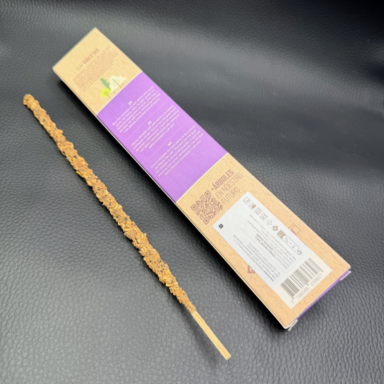 L’Encens à la Violette et au Palo Santo Artisanal est confectionné artisanalement. Cette méthode implique un façonnage manuel des bâtonnets et un séchage contrôlé.